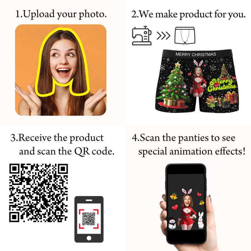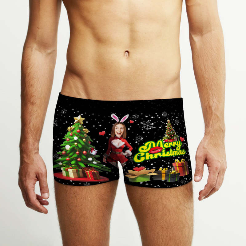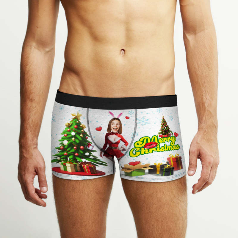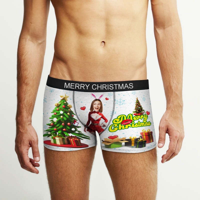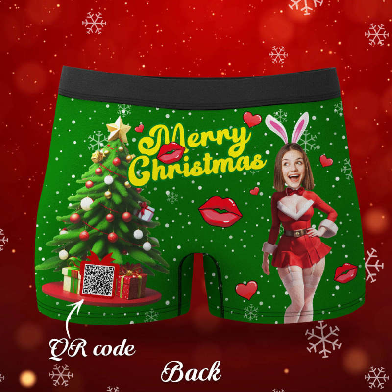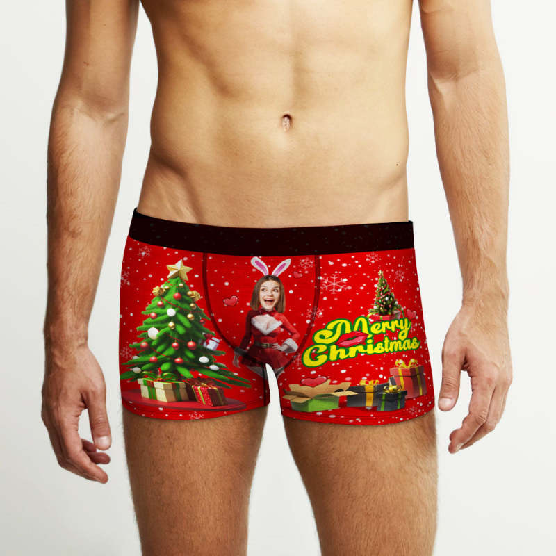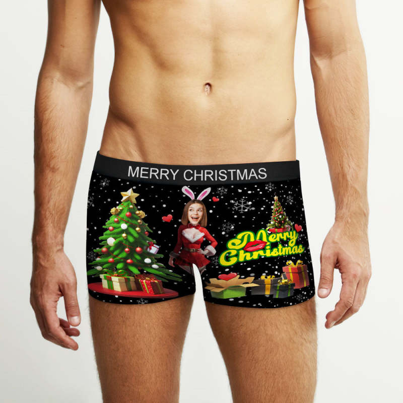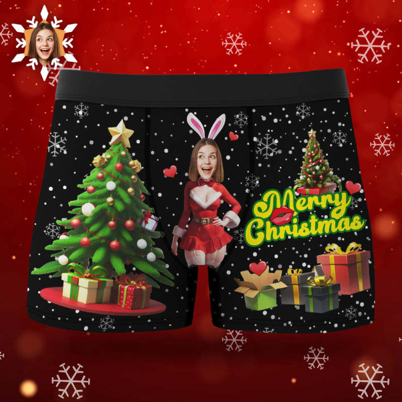 Custom Photo Boxer Santa Bunny Girl Face Underwear Couple Gifts Christmas Gift AR View