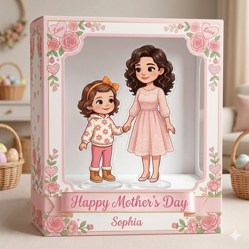 Custom Photo Cartoon Style Mother and Kid Acrylic Plaque with Gift Box Gifts for Mom