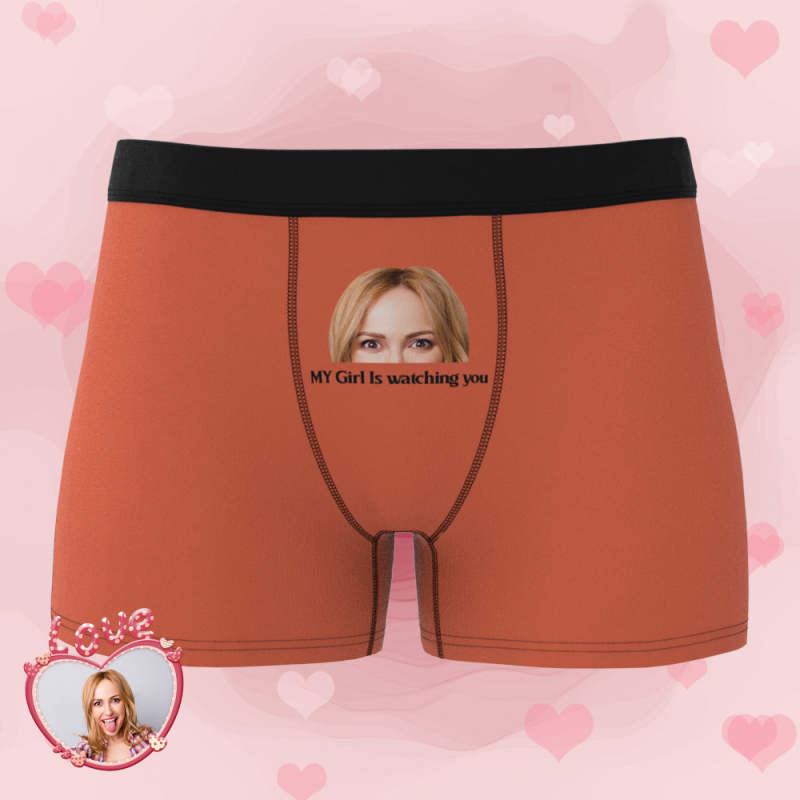 Custom Photo Face Underwear My Girl is Watching You Funny Gifts for Him