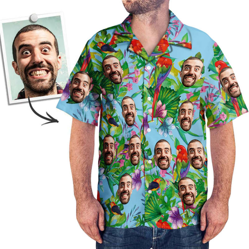 Custom Photo Hawaiian Shirt Parent-child Wears Personalized Face Hawaiian Shirt Gift Colorful Parrot
