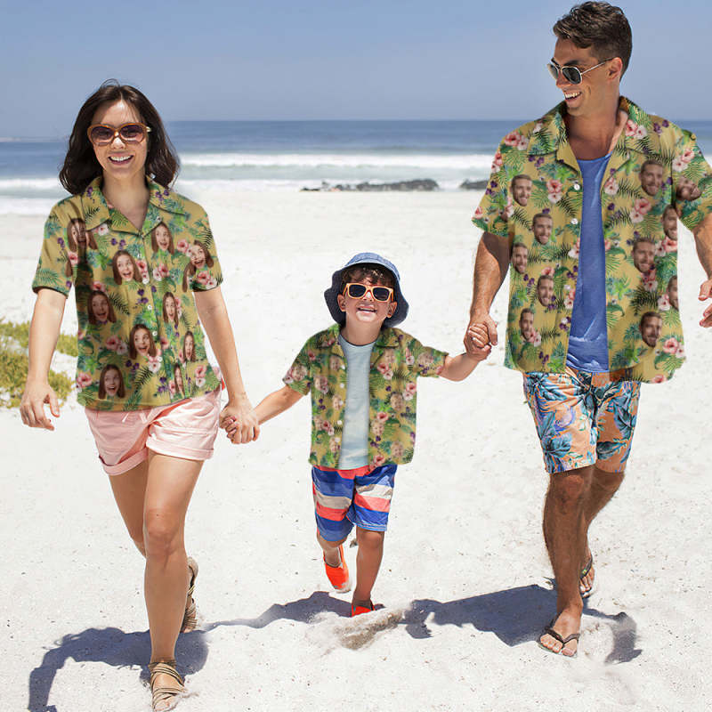 Custom Photo Hawaiian Shirt Parent-child Wears Personalized Face Hawaiian Shirt Gift Fashion Apparel