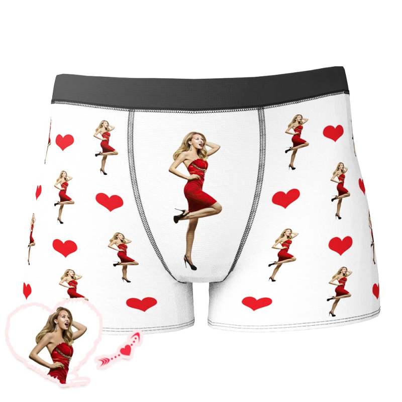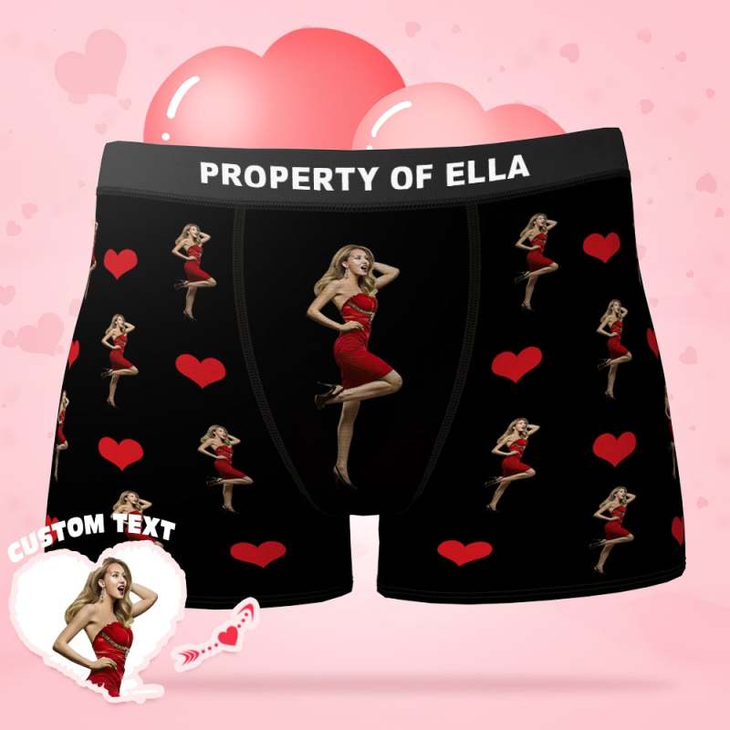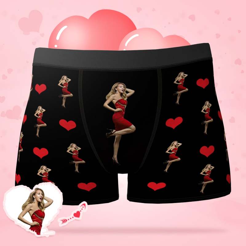 Custom Photo Heart Boxer Personalized Sexy Underwear Valentine's Day - Men