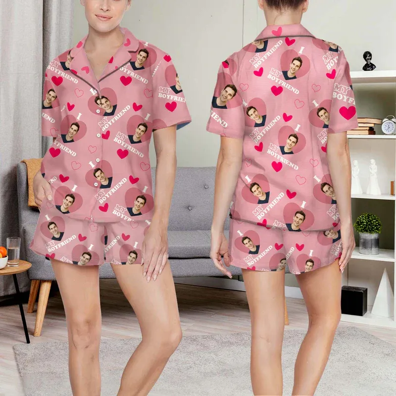 Custom Photo I Love My Husband Wife - Anniversary, Birthday Gift For Spouse, Husband, Wife, Boyfriend, Girlfriend - Personalized Custom Short Pajamas Set
