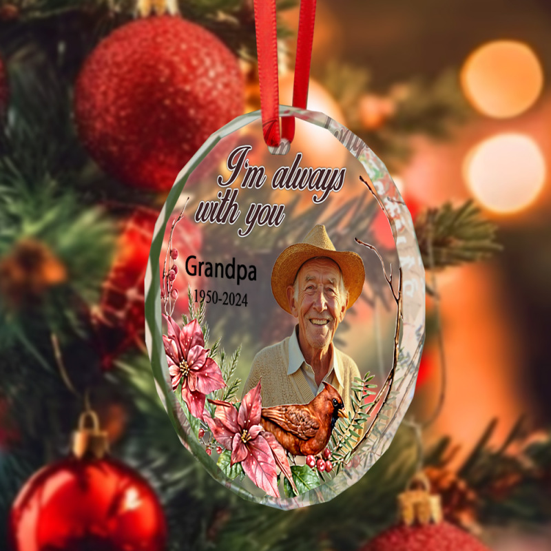 Custom Photo Memorial Ornament Personalized Round Glass Christmas Ornament