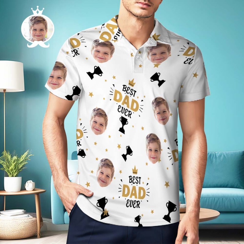 Custom Photo Men's Polo Shirt Best Dad Ever Father's Day Gift