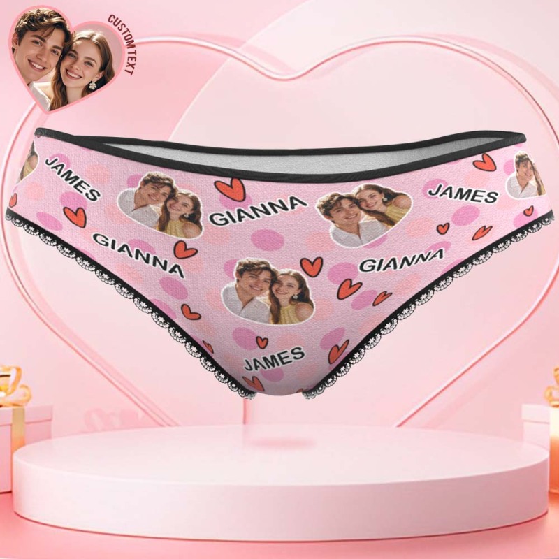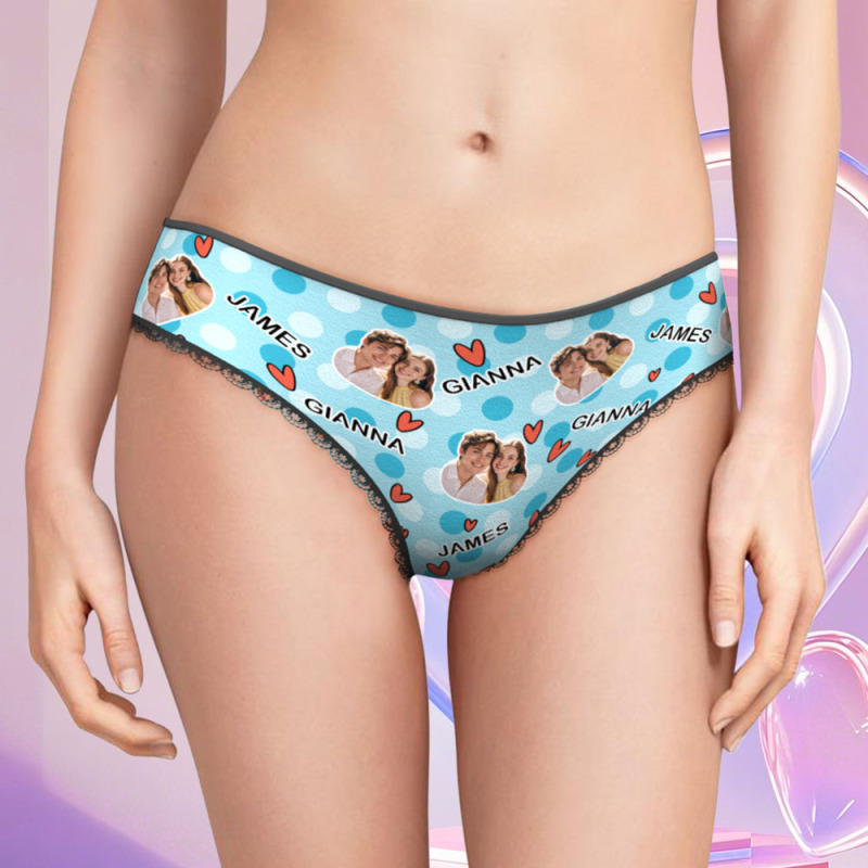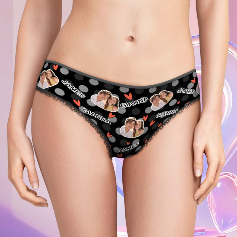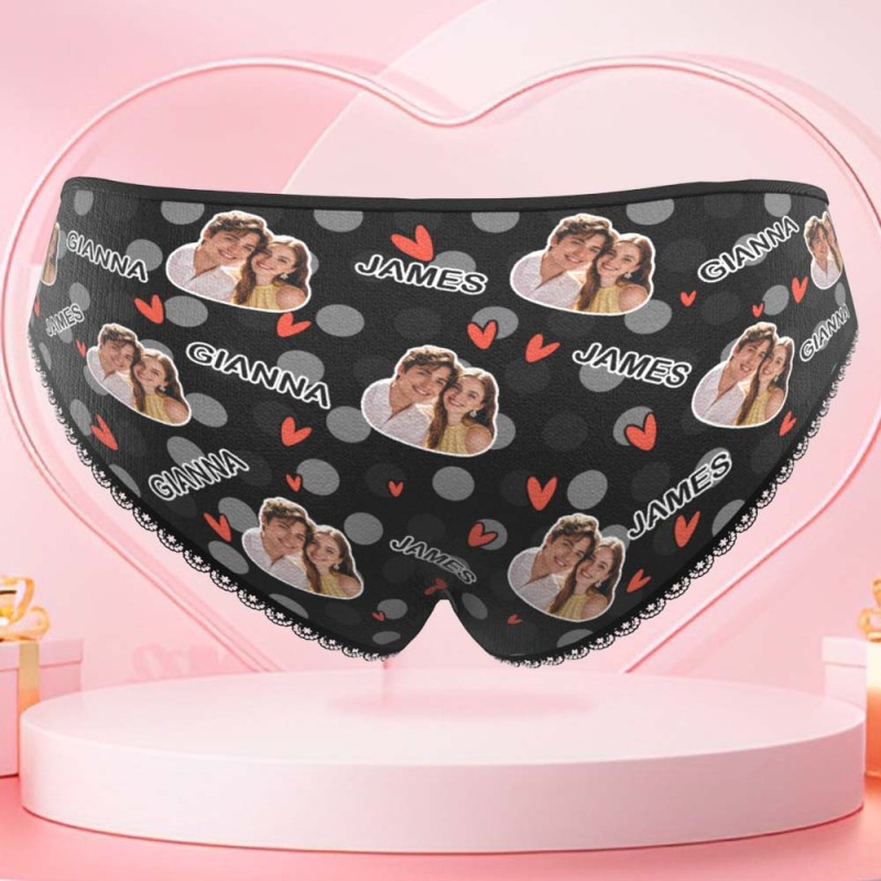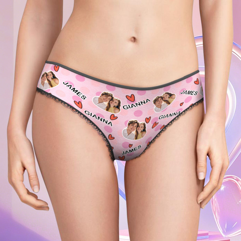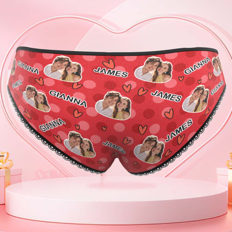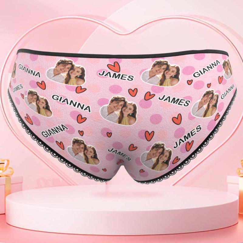 Custom Photo Panties Personalized Multicolor Heart Dot Women's Underwear Valentine's Gift for Girlfriend