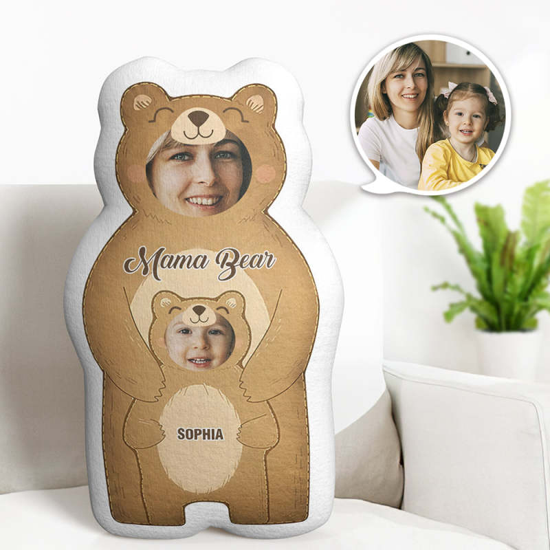 Custom Photo Pillow Bear Mom with Kids Personalized Names Gifts for Mom