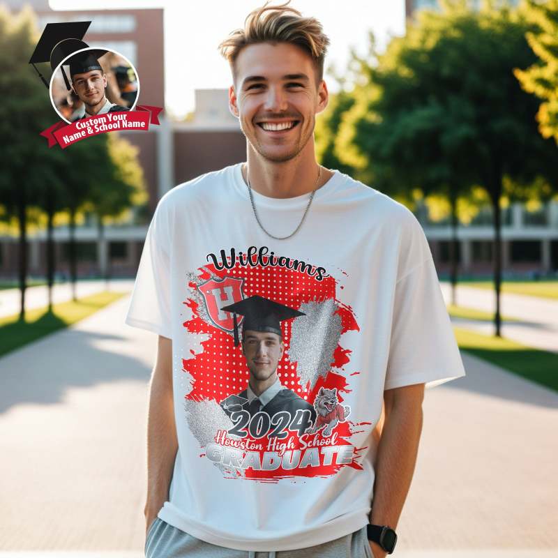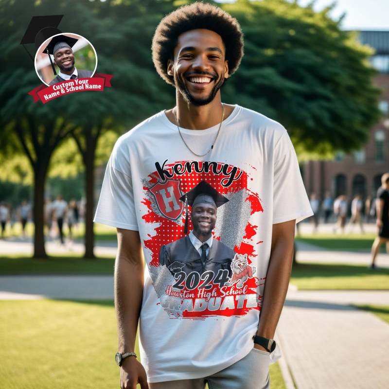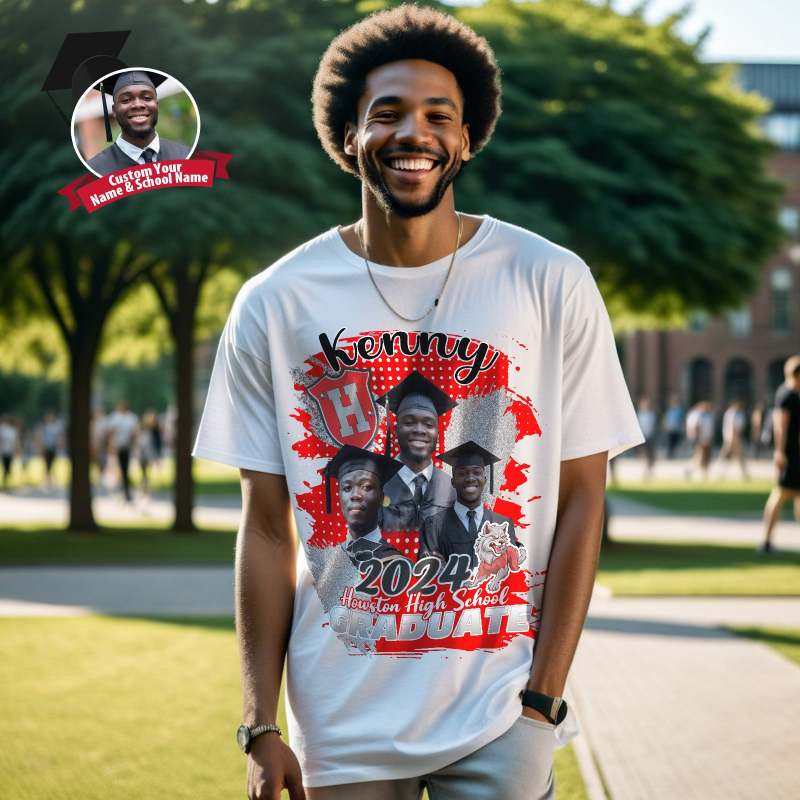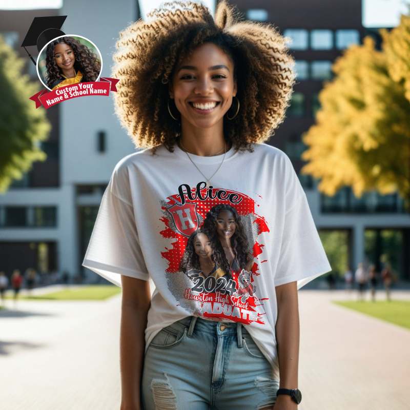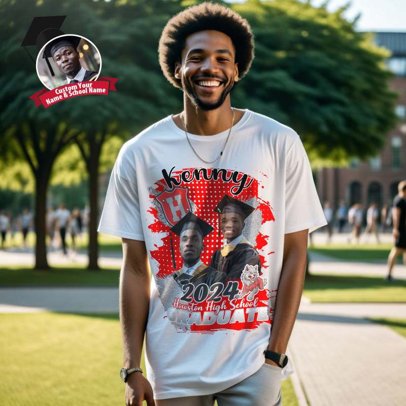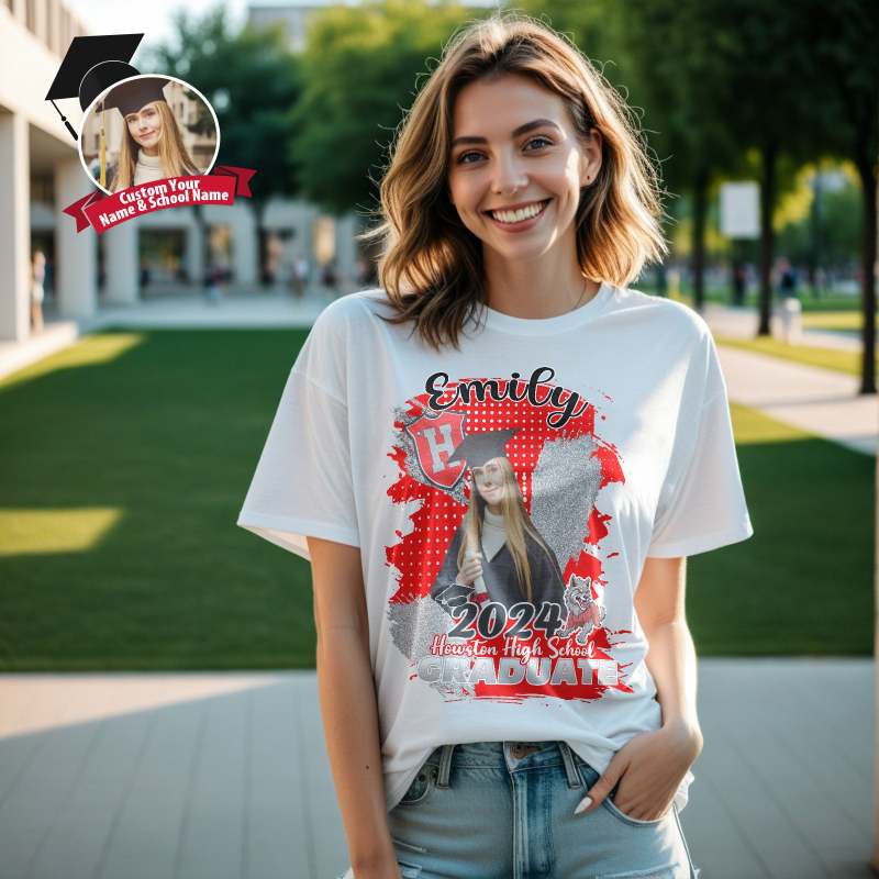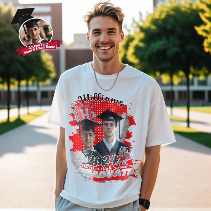 Custom Shirt Personalized Photo Vintage T-shirt Custom Graduation 2024 T-shirt with Name
