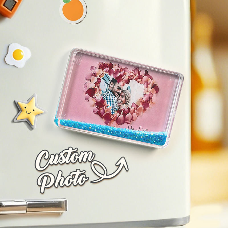 Custom Quicksand Fridge Magnet Personalized Photo Refrigerator Magnet Home Decoration for Lover