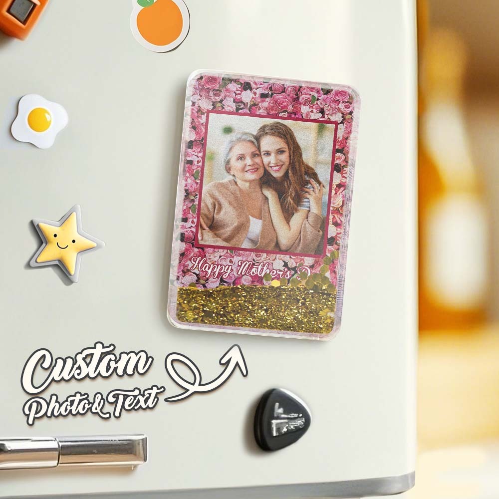 Custom Quicksand Fridge Magnet Personalized Photo Refrigerator Magnet Home Decoration Happy Mother's Day