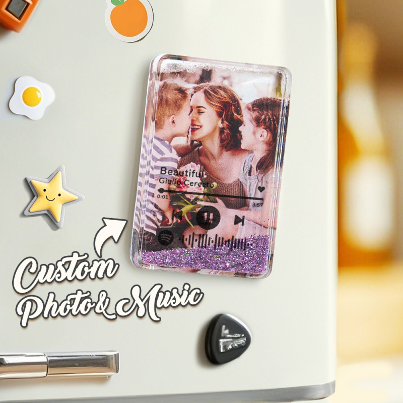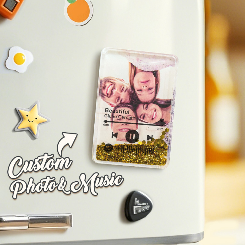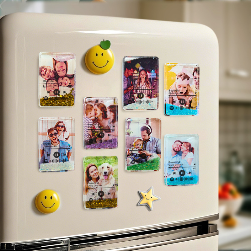 Custom Quicksand Fridge Magnet With Music Personalized Photo Refrigerator Magnet Home Decoration Gift for Couple