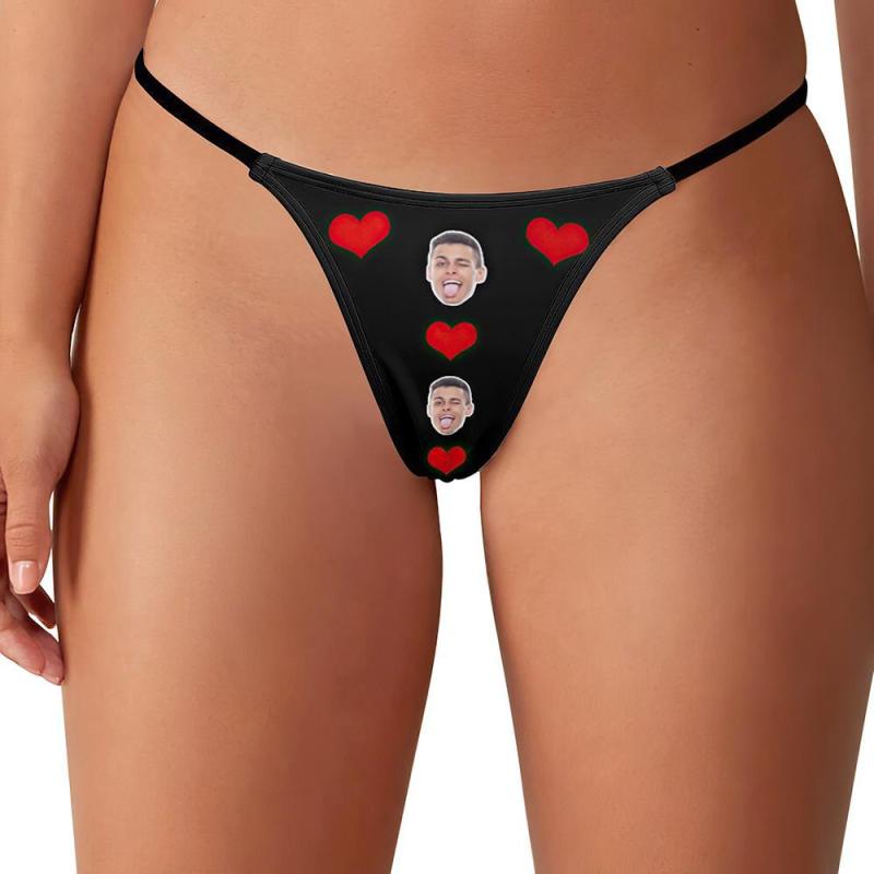 Custom Red Heart Face Thong Women Customized Sexy Printed Photo Thong