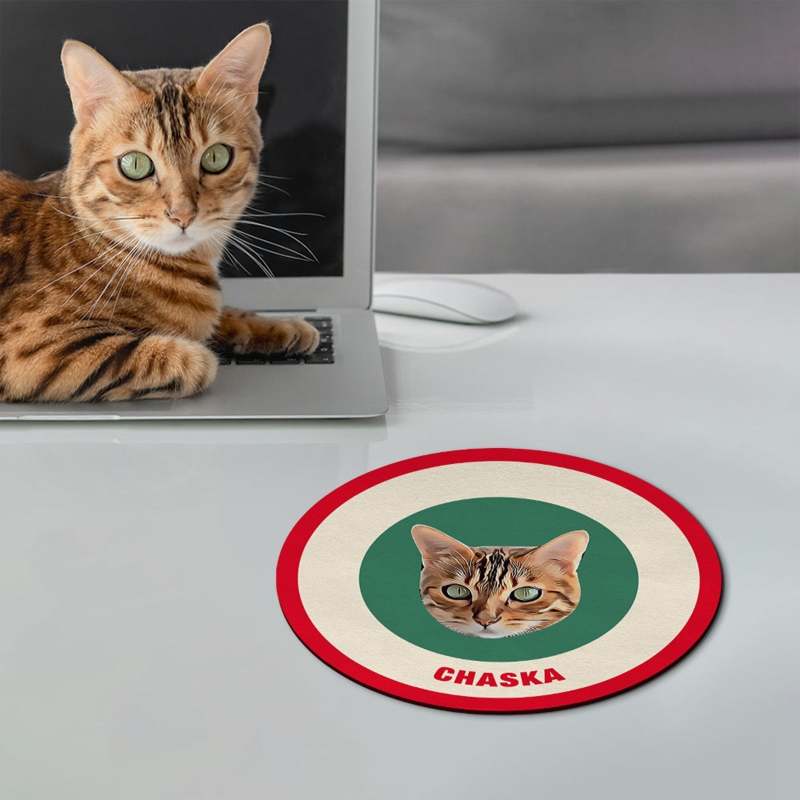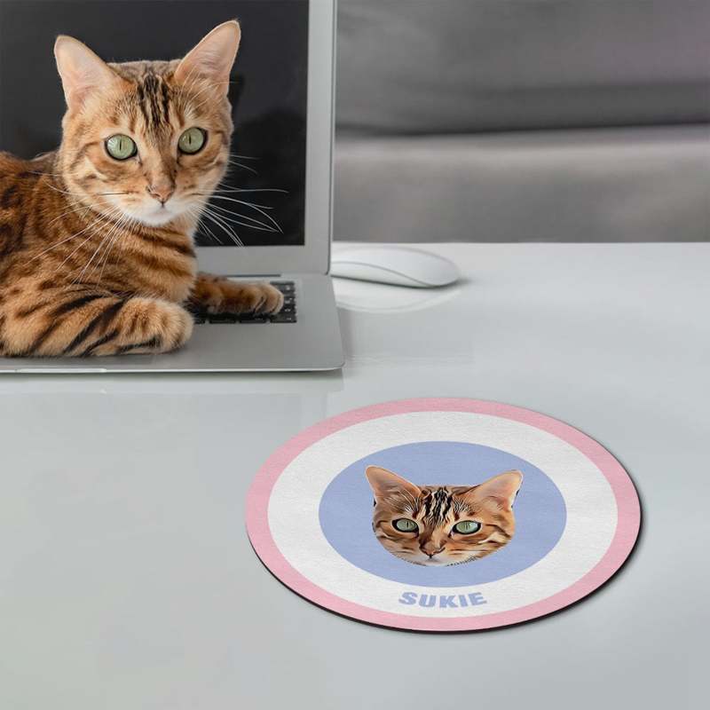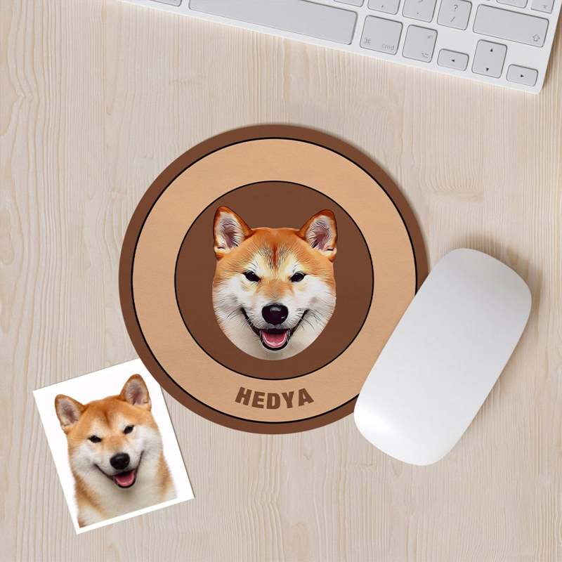 Custom Round Mouse Pad Personalized Pet Face with Name Gift for Pet Lover - Orange