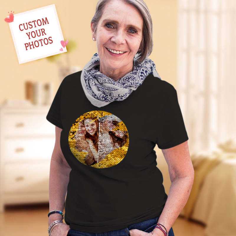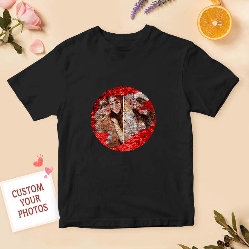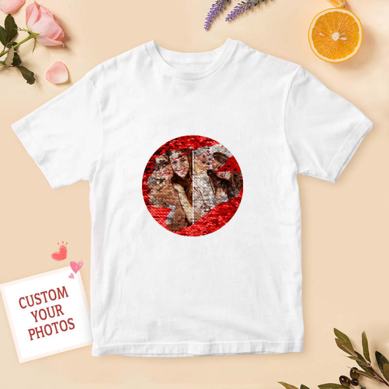 Custom Shirt Personalized Sequin T-Shirt Custom Shirt Personalized Mom Collage Photo Sequin T-Shirt Best Mother's Day Gift