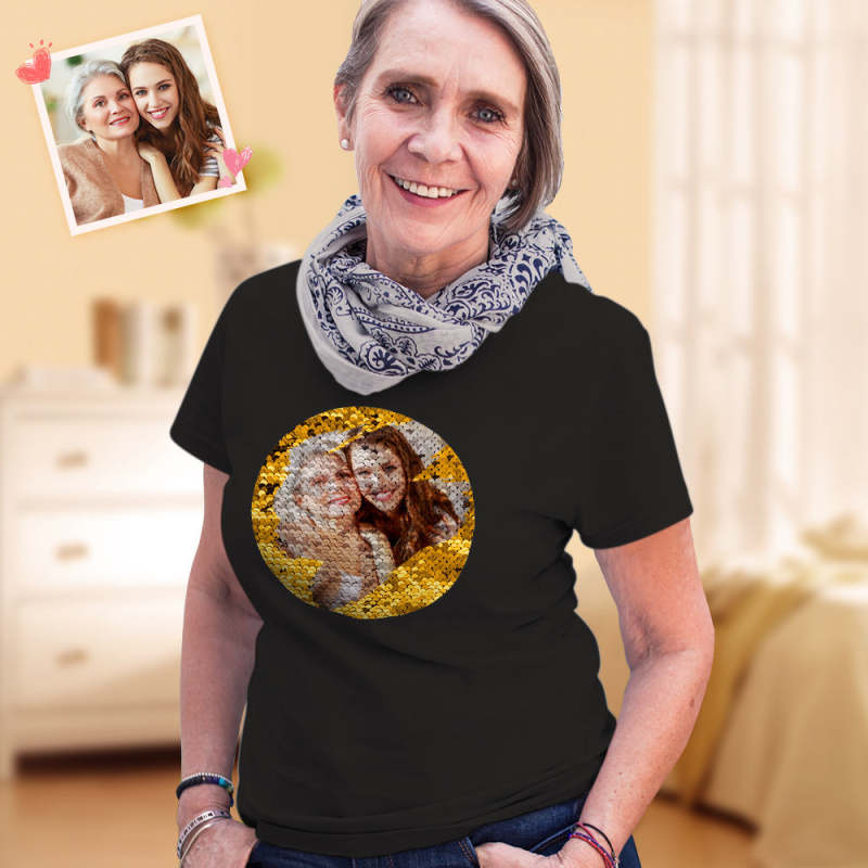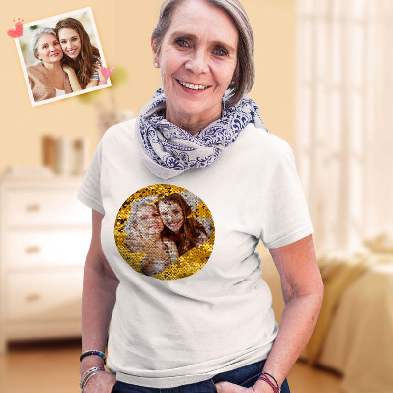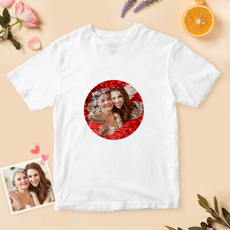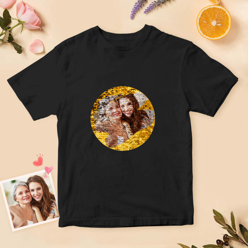 Custom Shirt Personalized Sequin T-Shirt Personalized T-shirt Custom Photo Sequin T-Shirt Best Mother's Day Gift