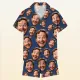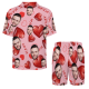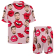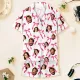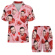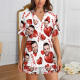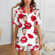 Custom Short Sleeve Pajama Bright Pink Base with 3D Red Hearts and Lips Prints Valentine's Day Gift for Her