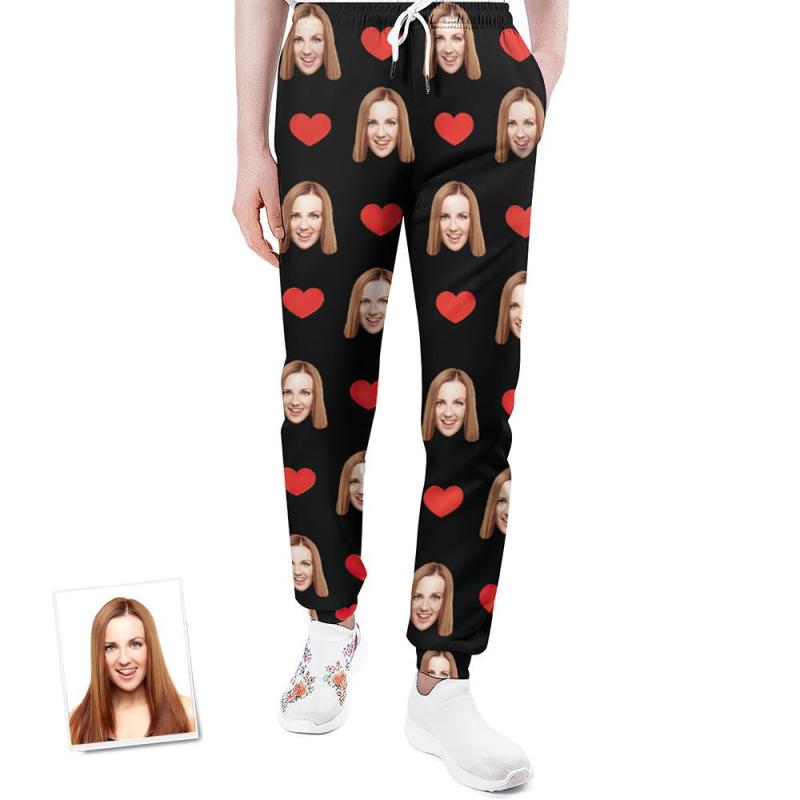 Custom Sweatpants Unisex Joggers with Face Heart Pattern