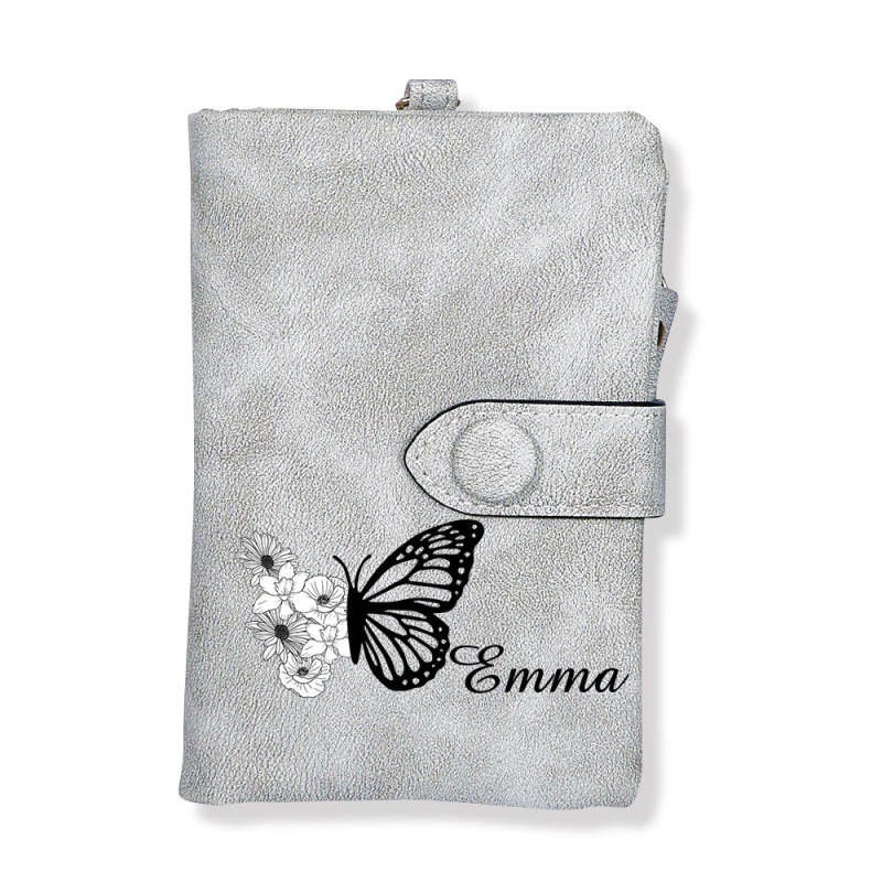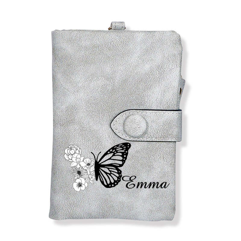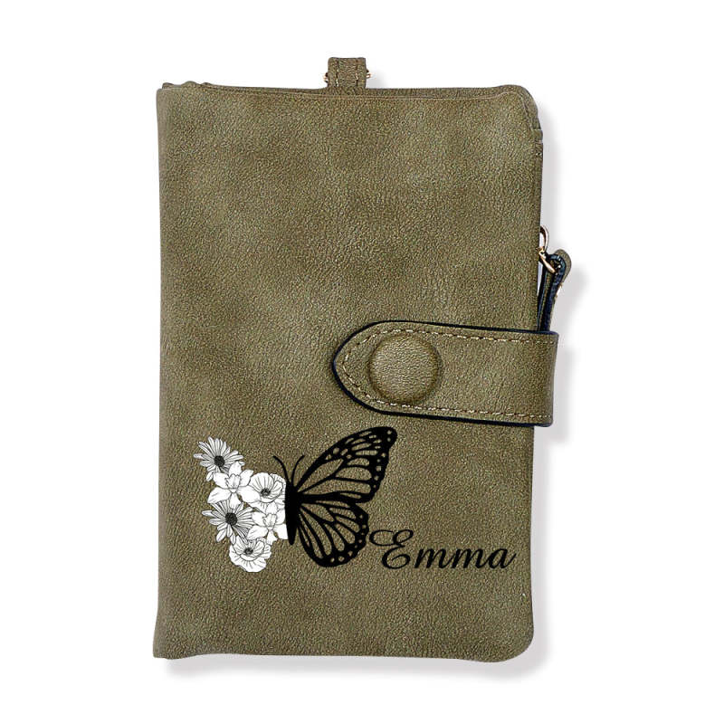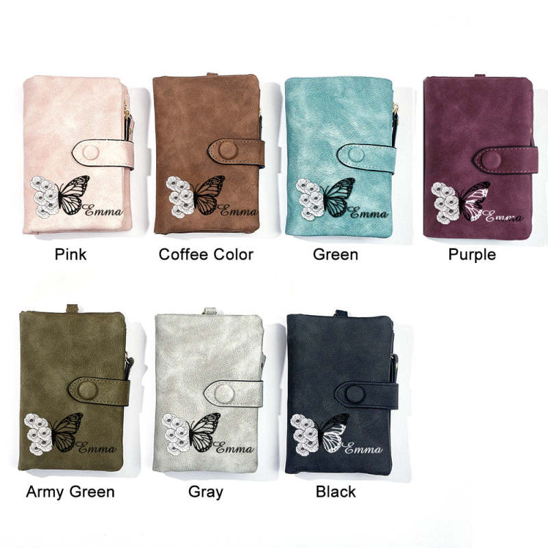 Custom Tri-Fold Butterfly Birth Flower Leather Wallet with Coin Holder Personalized Mother's Day Gift for Woman