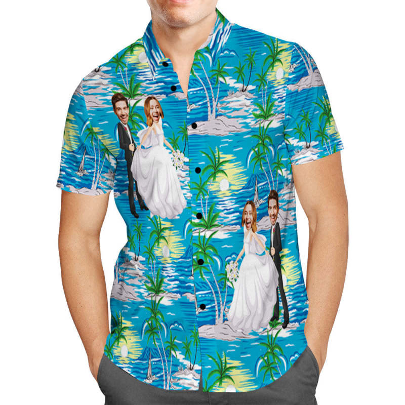 Custom Wedding Hawaiian Shirt Personalized Coconut Tree Face Hawaiian Shirt Wedding Gift