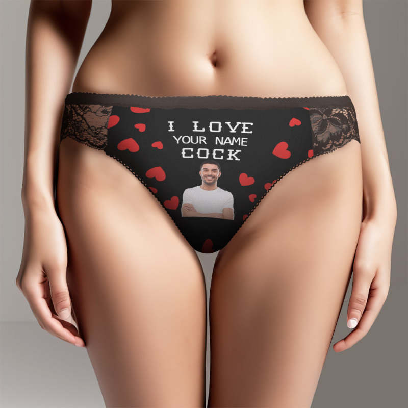 Custom Women Lace Panty I Love Your Cock Face Sexy Panties