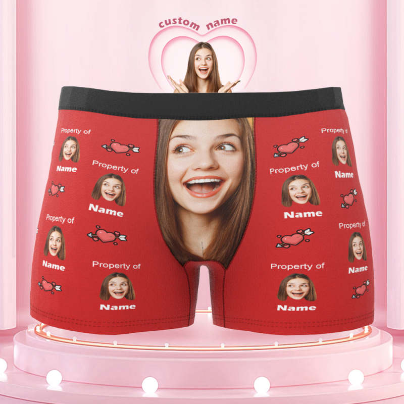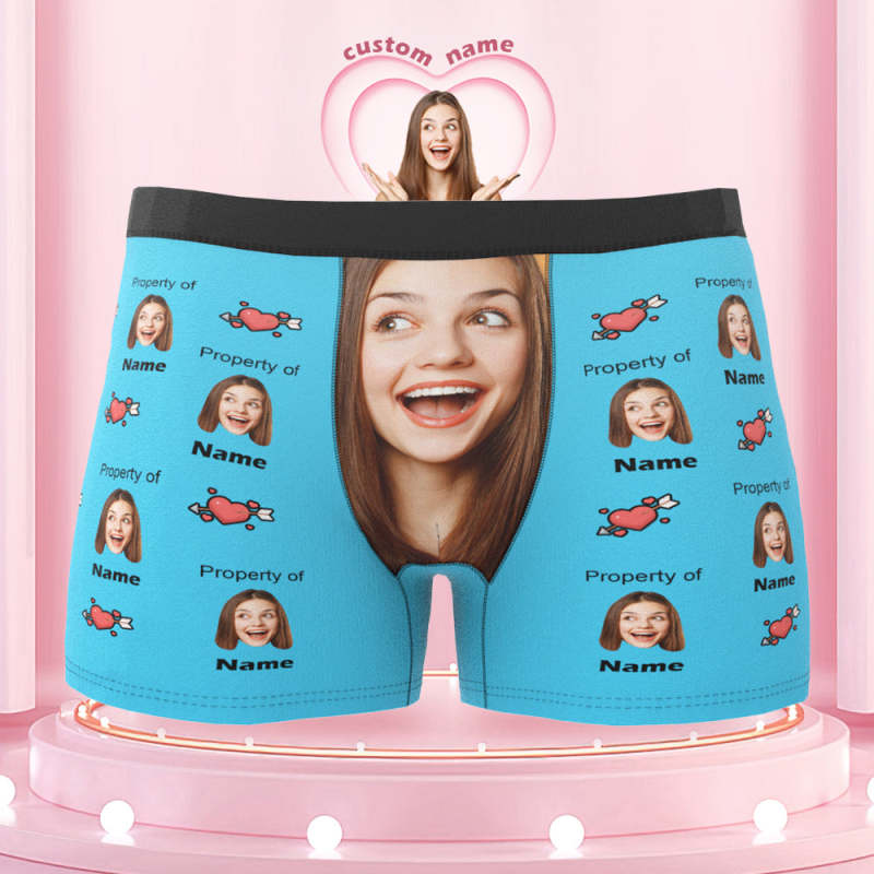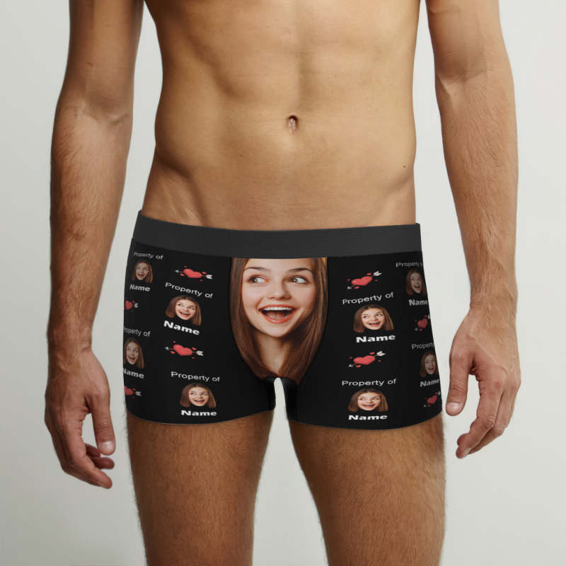 Customized Boxer Briefs Love Heart Property of Name Men's Personalized Underwear Funny Gift