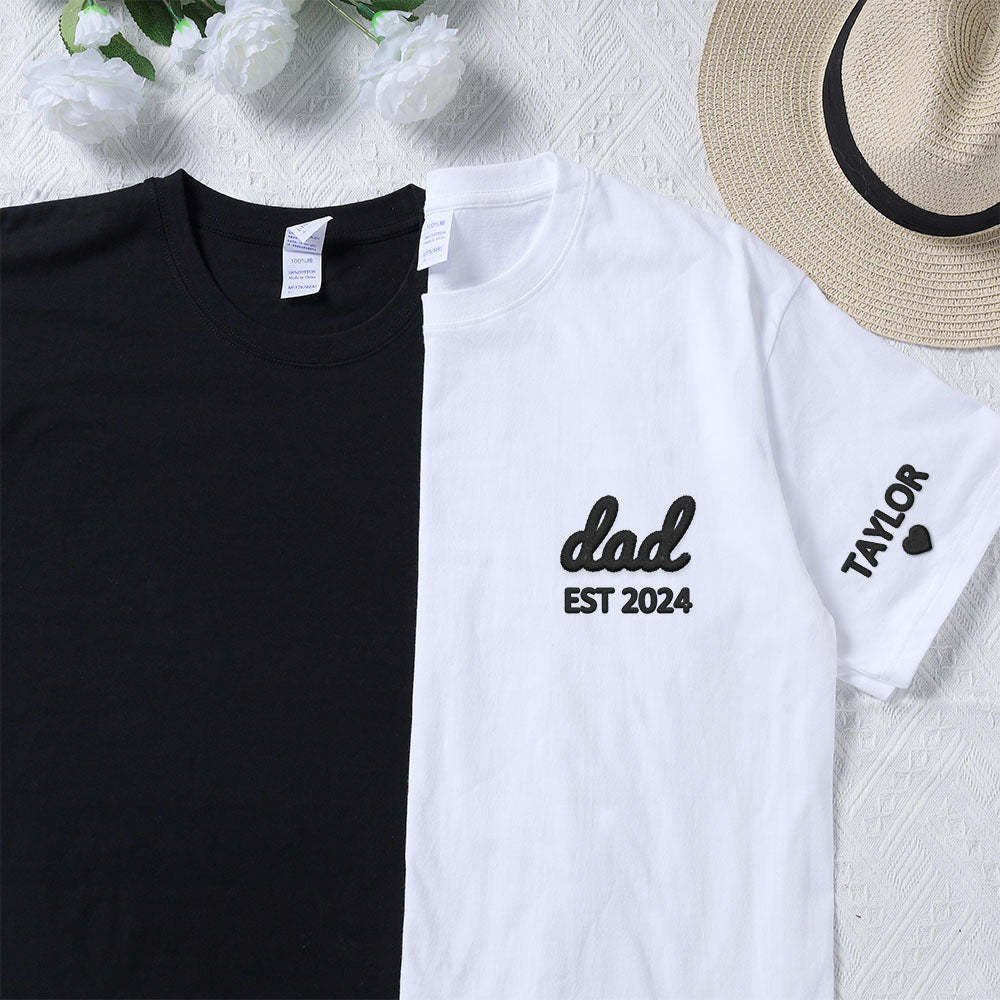 Father's Day Gifts Dad Embroidered T-Shirt Custom Dad Shirt With Kids Names Daddy Est Year T-Shirt