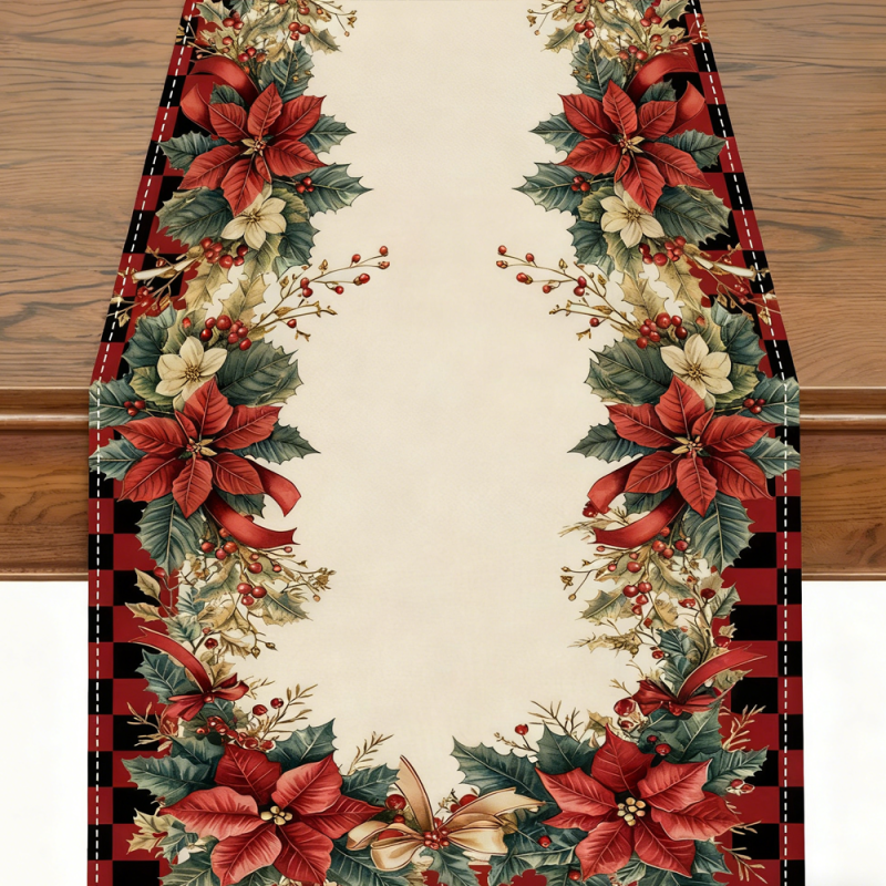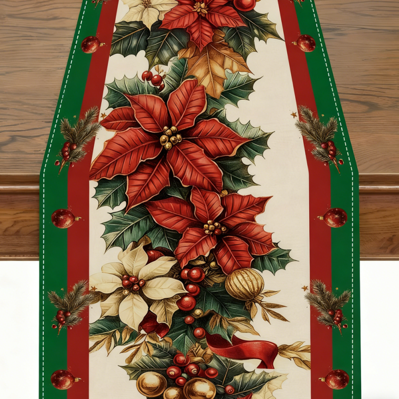 Elegant Christmas Table Runner - Available in 12 Styles, Woven Polyester