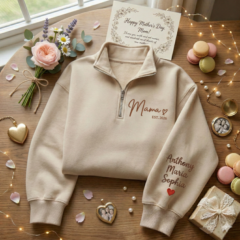 Crafted from soft, comfortable fabric with a relaxed fit, ribbed cuffs, and a high-quality zipper collar, this sweatshirt is perfect for everyday wear while keeping Mom warm and stylish.