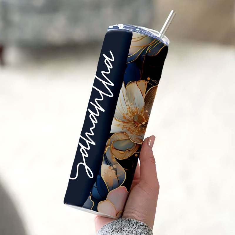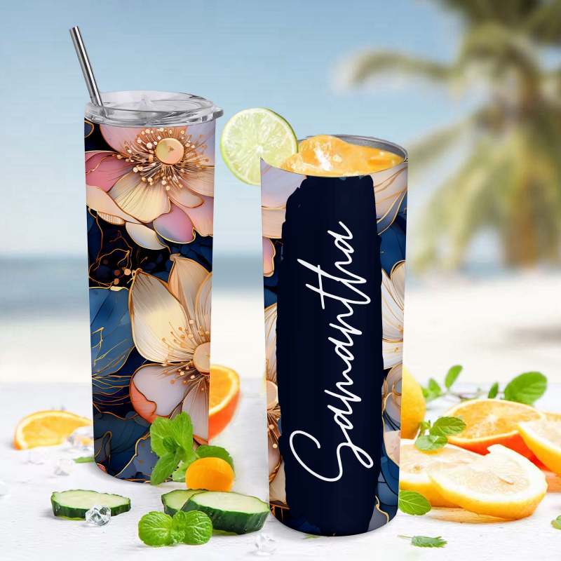 Flower Cup Personalized Custom Name Floral Tumbler