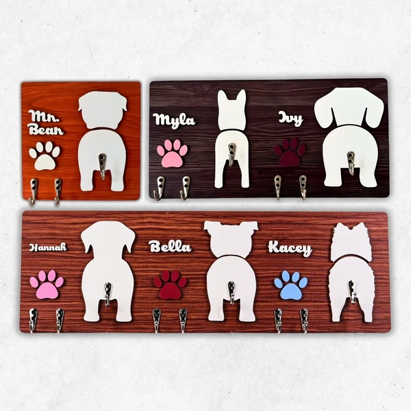 Handcraft Dog Leash Key Hanger Personalized Wooden Custom Dog Silhouette, Gift For Dog Parents