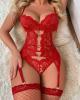 Lace Garter Lingerie Set Teddy Babydoll Strappy Bra and Panty Set