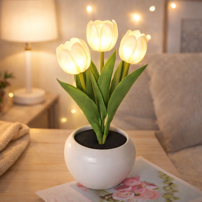 LED Tulip Night Light Dimmable Plug-in Romantic Flower Lamp Artificial Bloom Mother's Day Gift