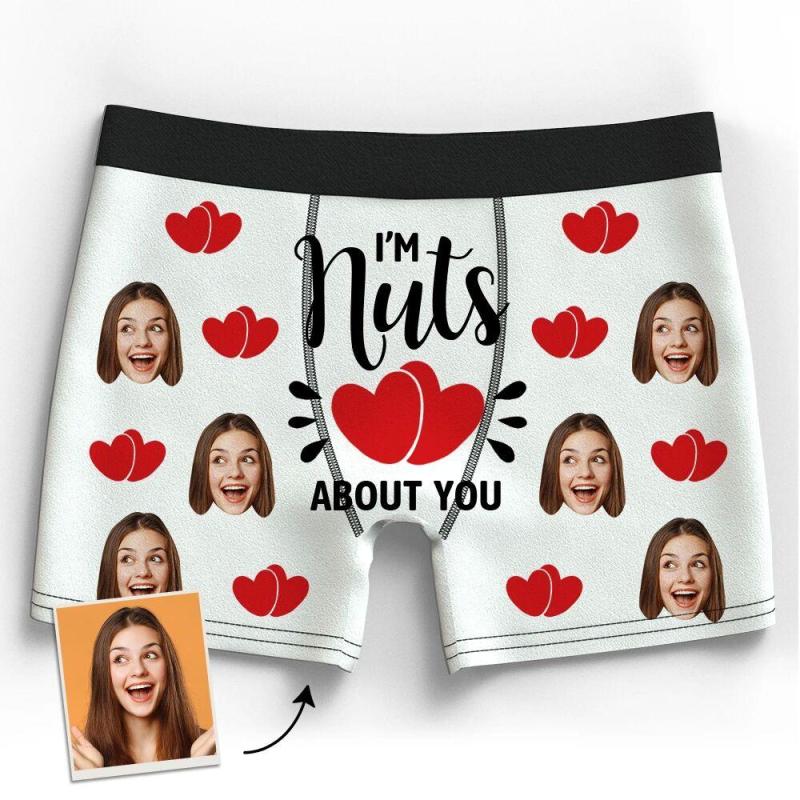 Men Customized Photo Boxer 3D Online Preview Girlfriend's Face - I'm Nuts about You Wedding Gift
