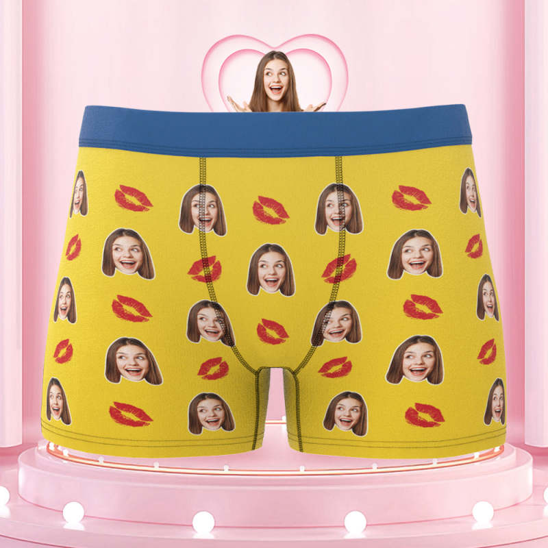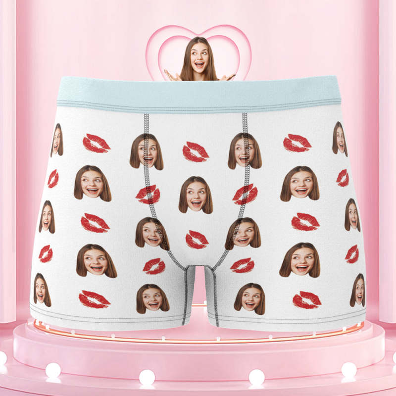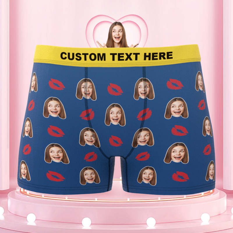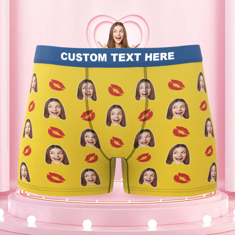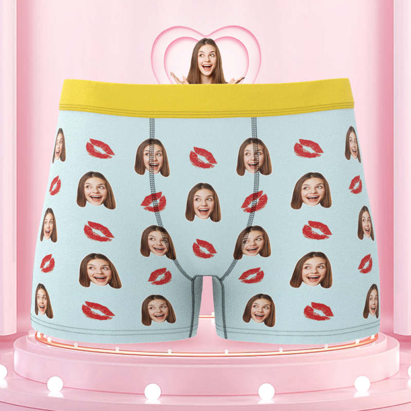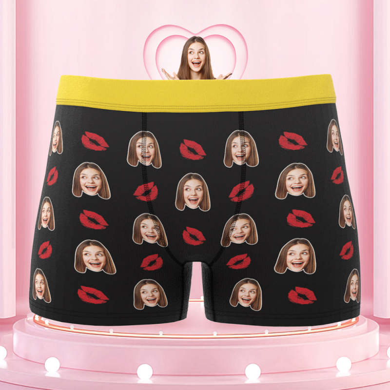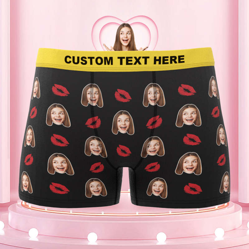 Men's Custom Face Colorful Waistband Boxer Briefs - Kiss