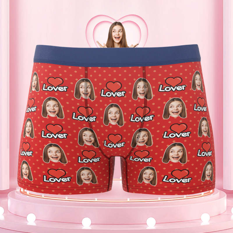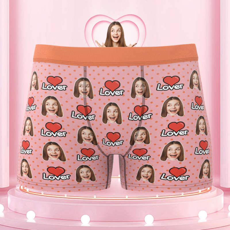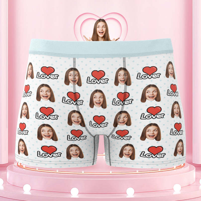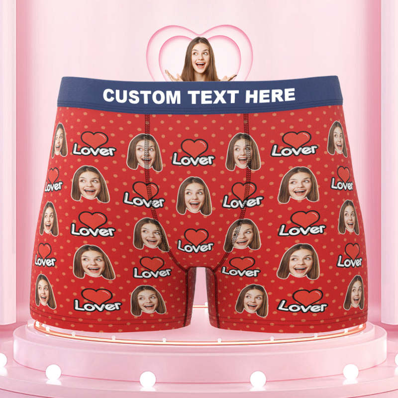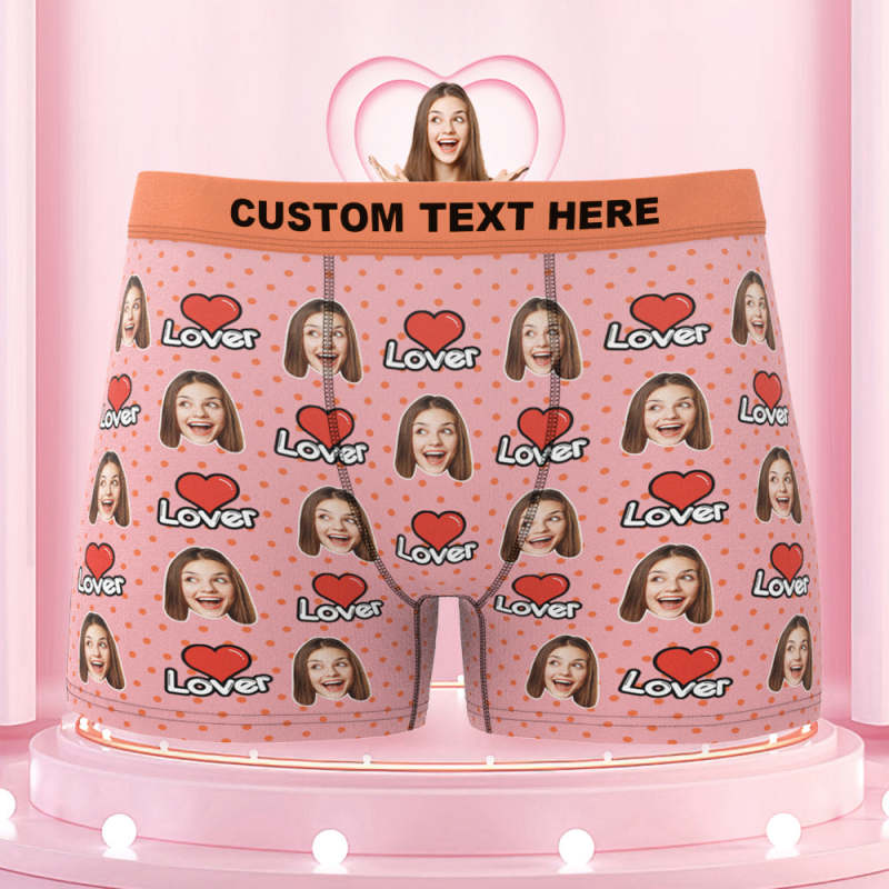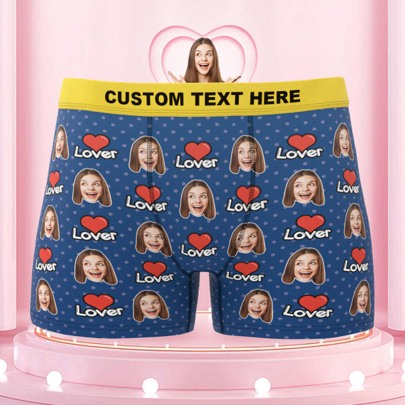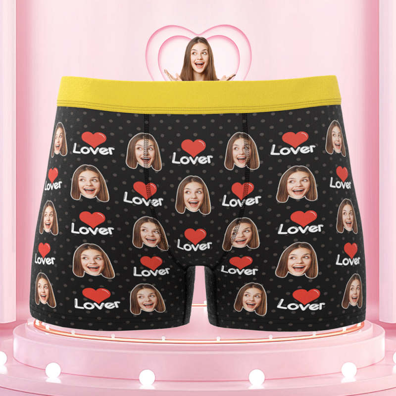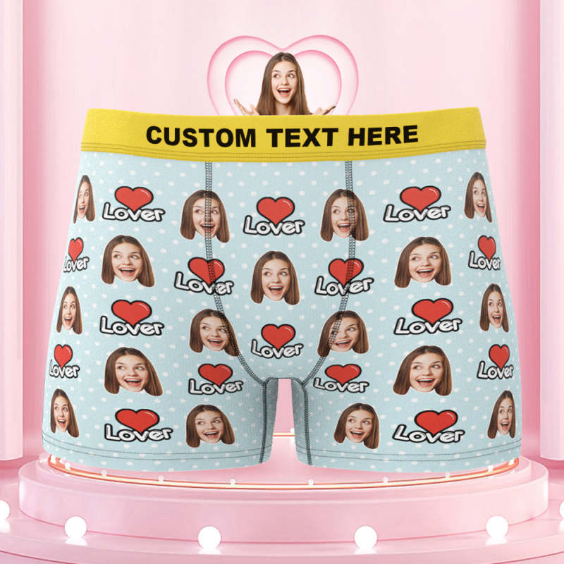 Men's Custom Face Colorful Waistband Boxer Briefs - Lover