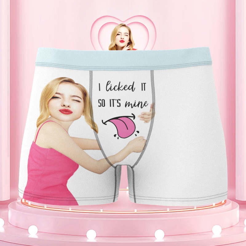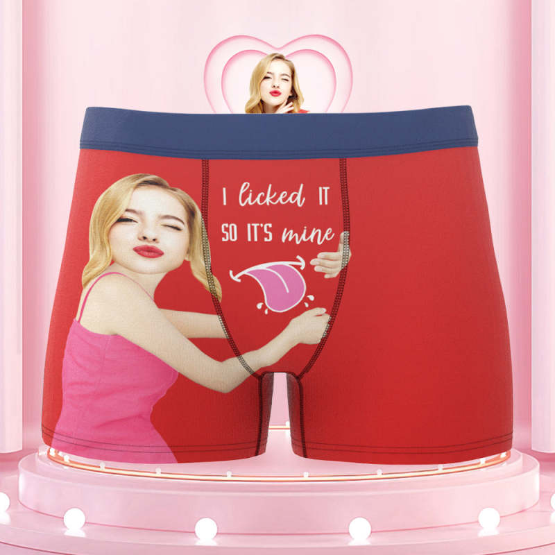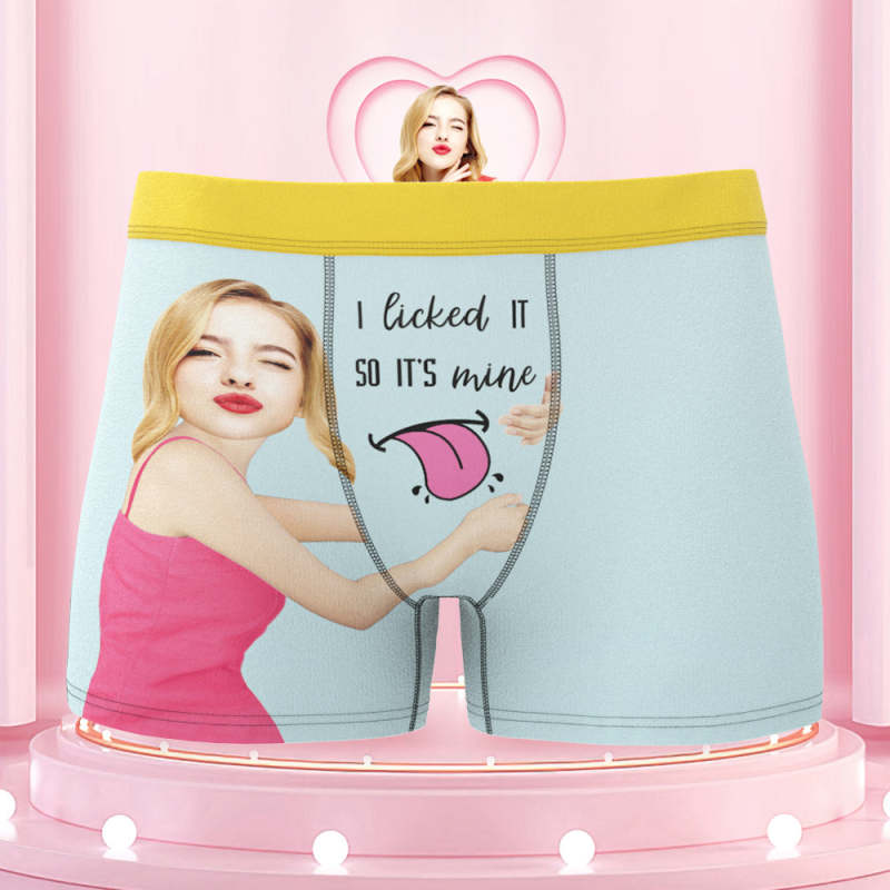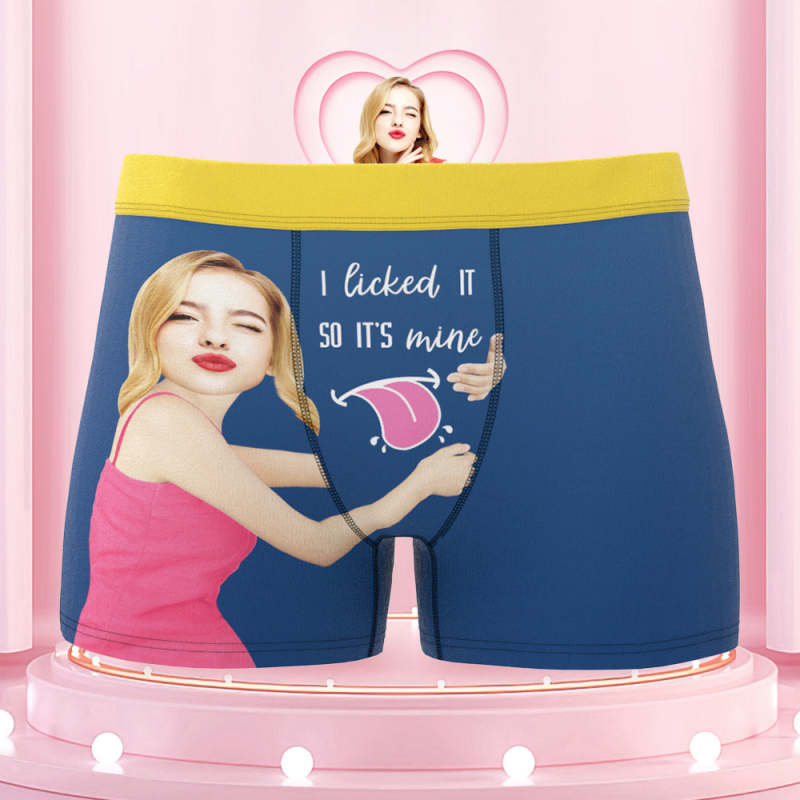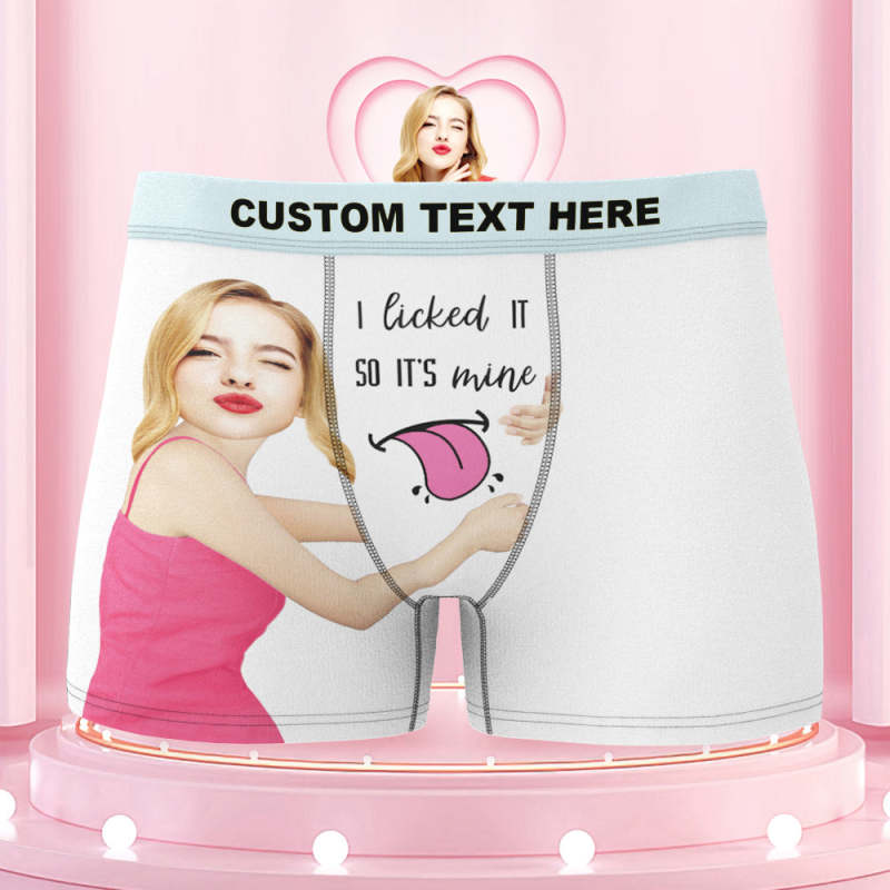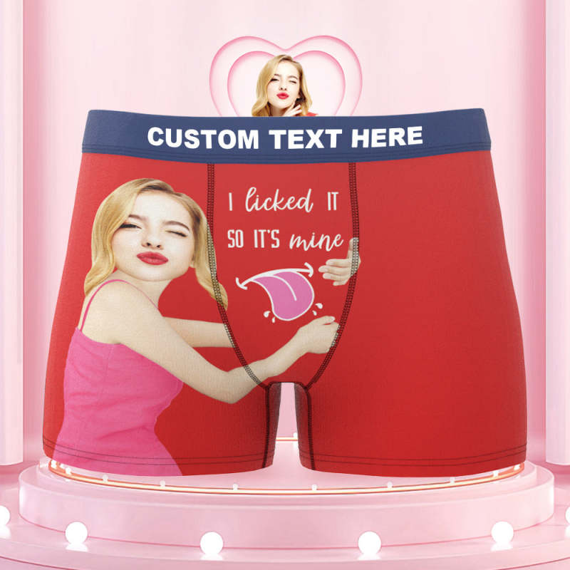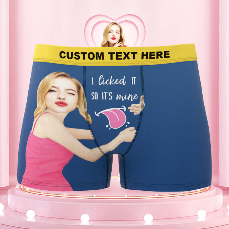 Men's Custom Face Colorful Waistband Boxer Shorts I licked IT SO IT'S mine