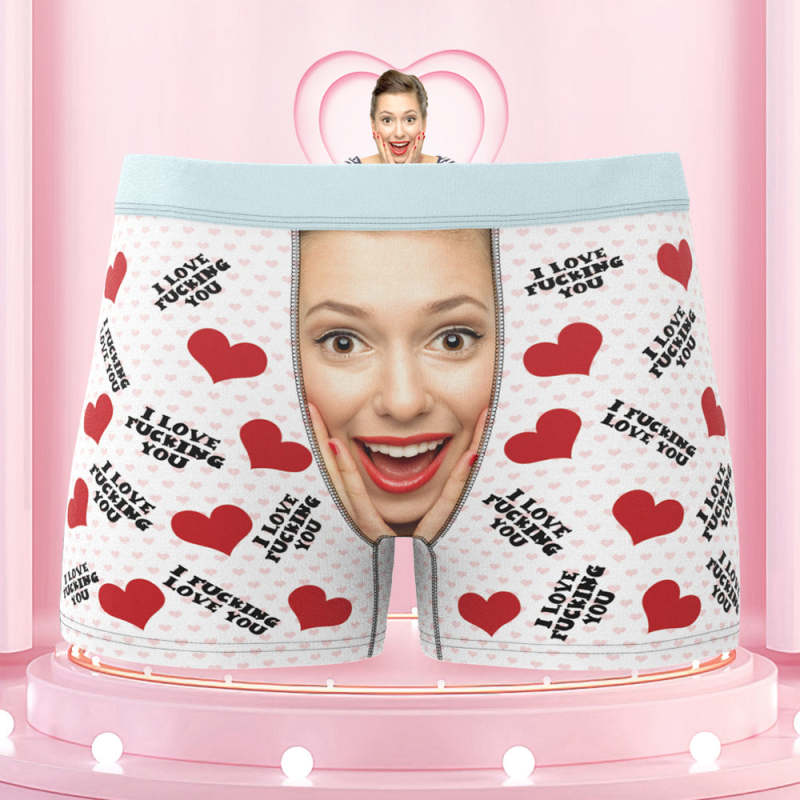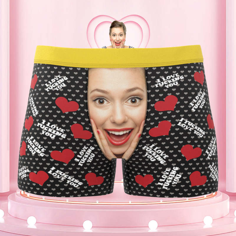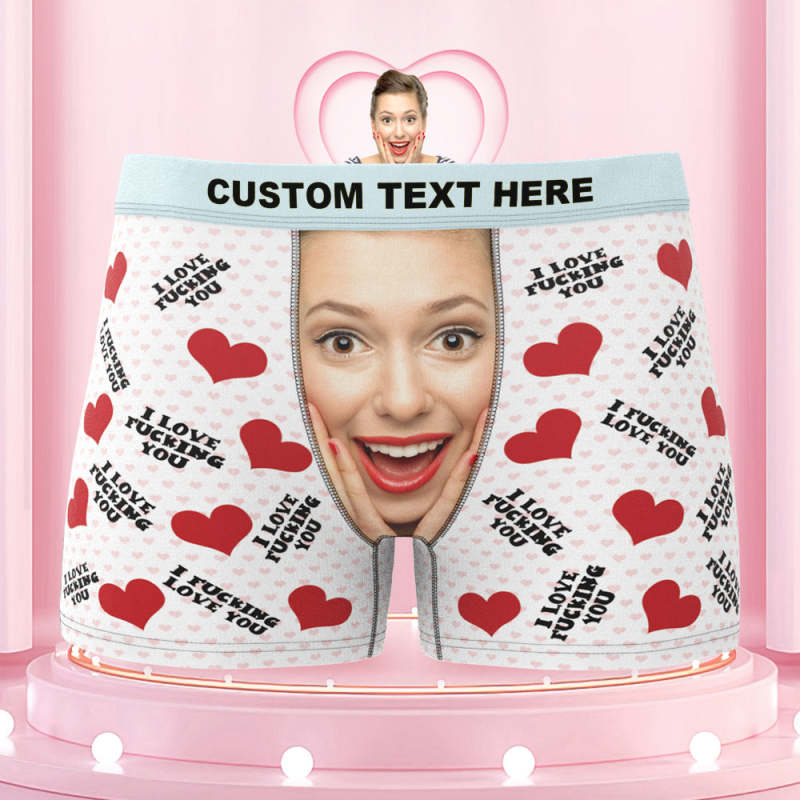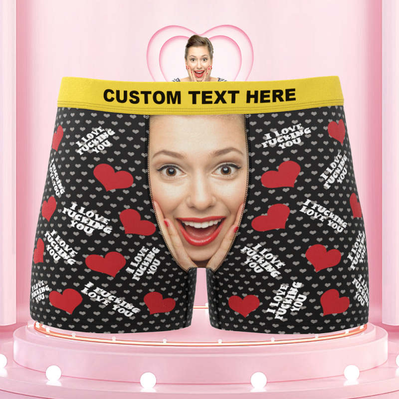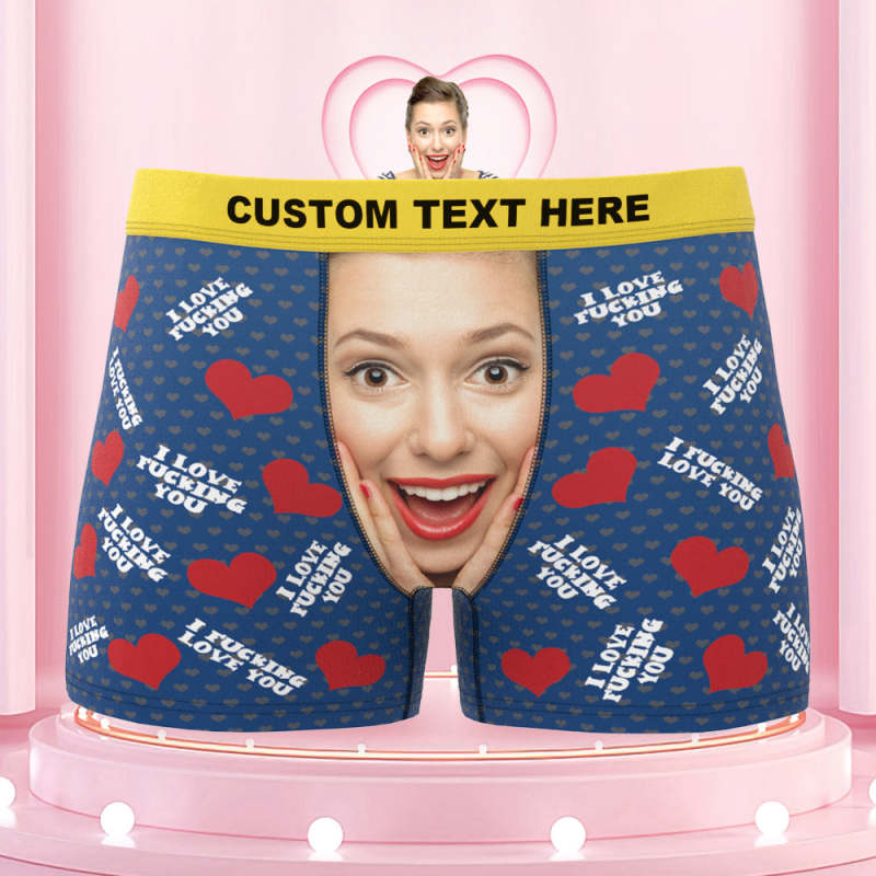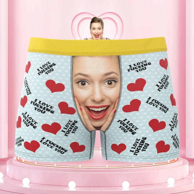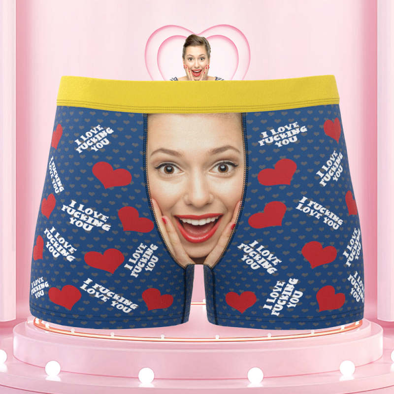 Men's Custom Face I FUCKING LOVE YOU Colorful Waistband Boxer Briefs