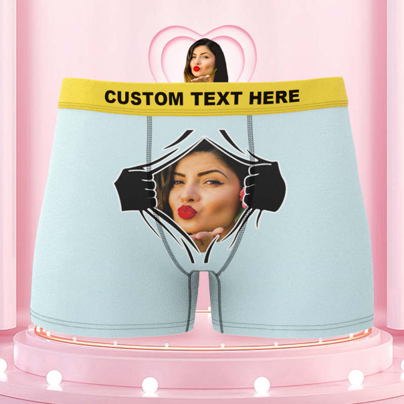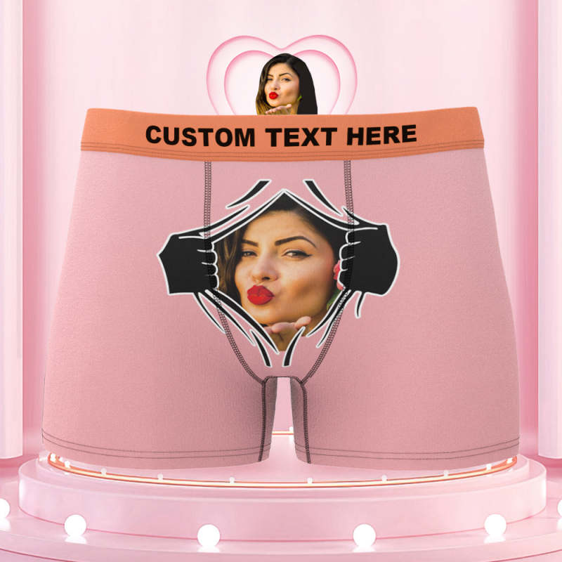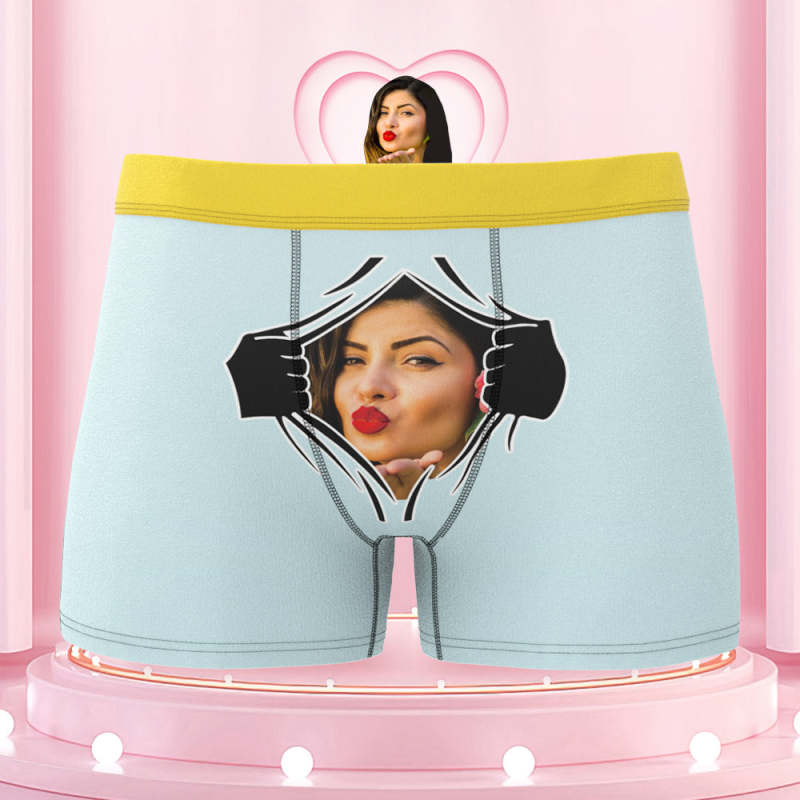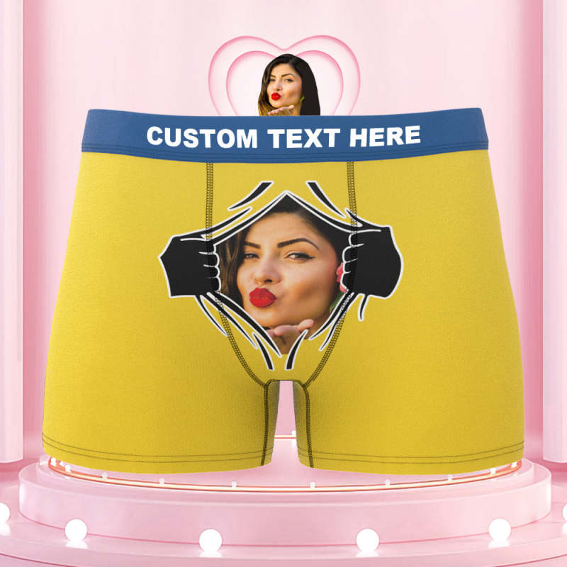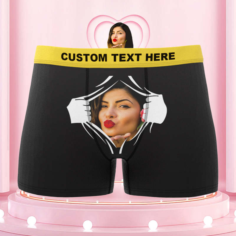 Men's Custom Face On Tearing Colorful Waistband Boxer Shorts