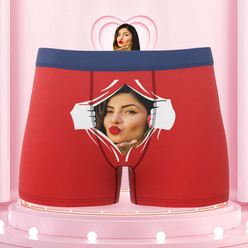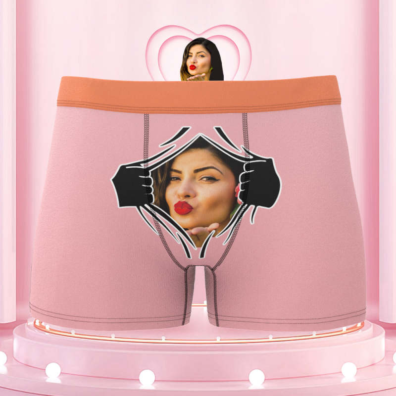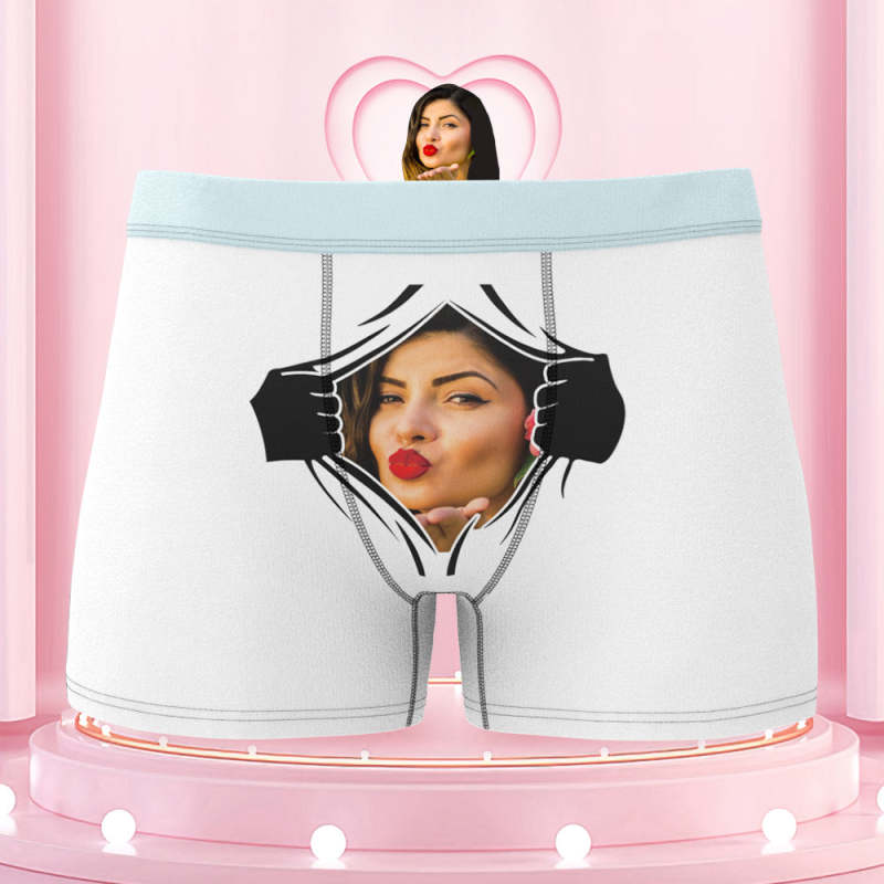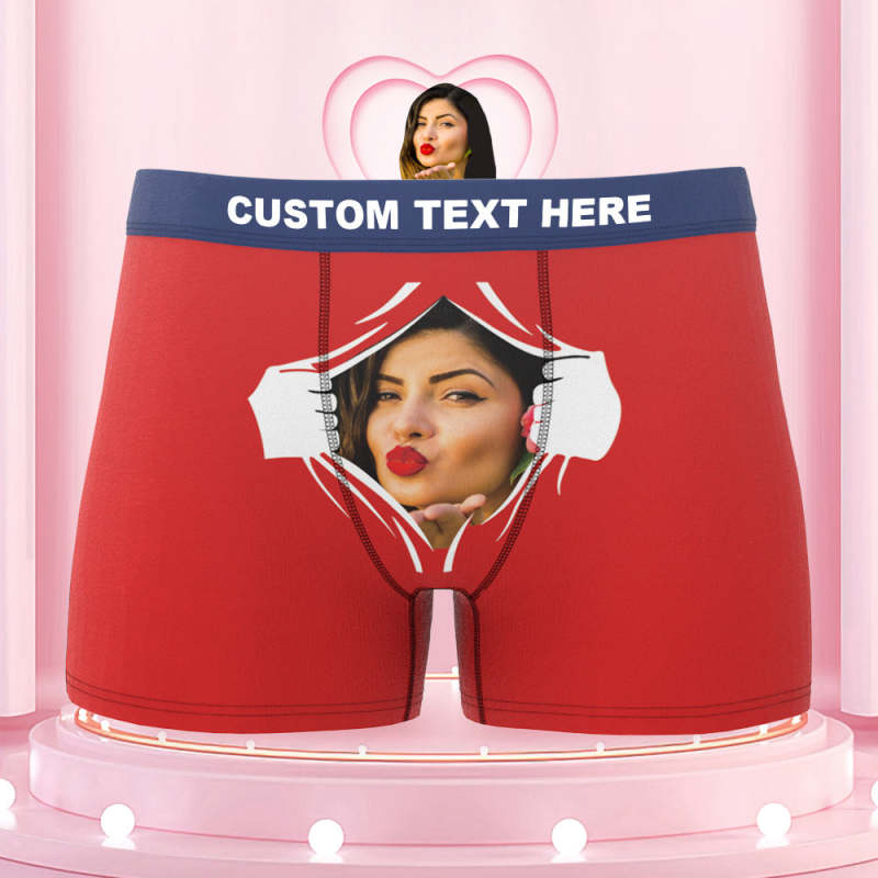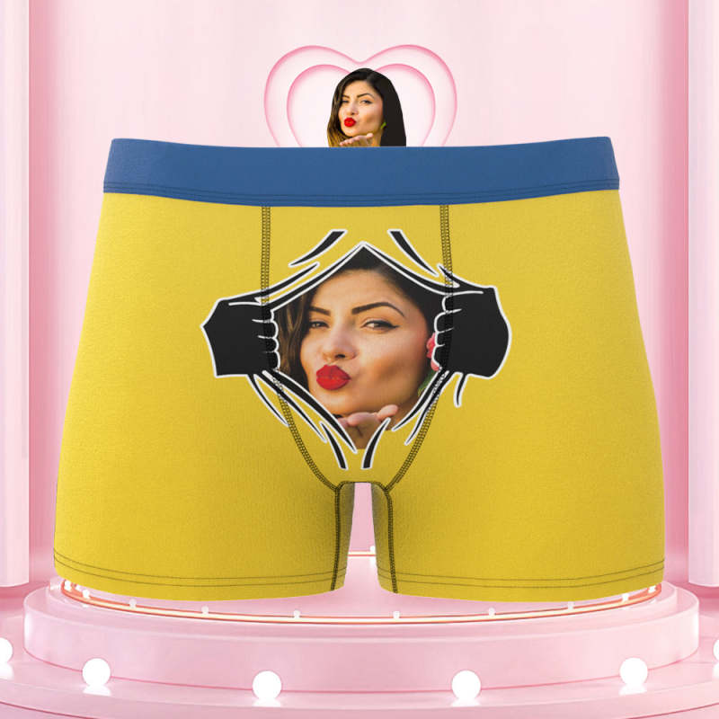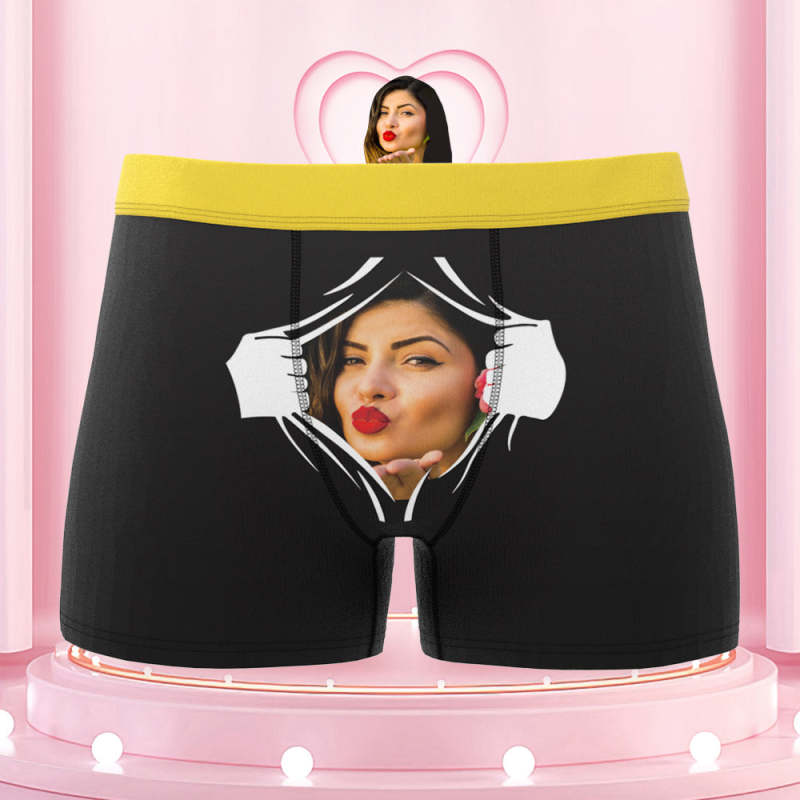 Men's Custom Face On Tearing Colorful Waistband Boxer Shorts