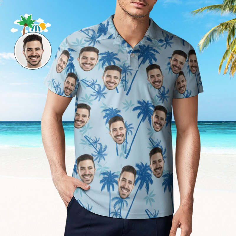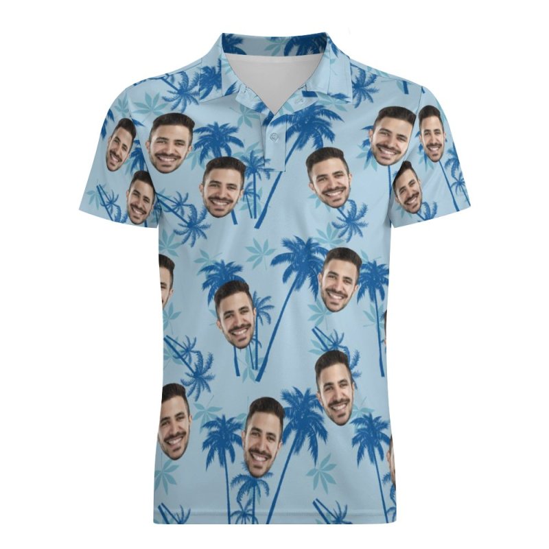 Father's Day Gifts Men's Custom Polo Shirt Personalized Light Blue Hawaiian Golf Shirts