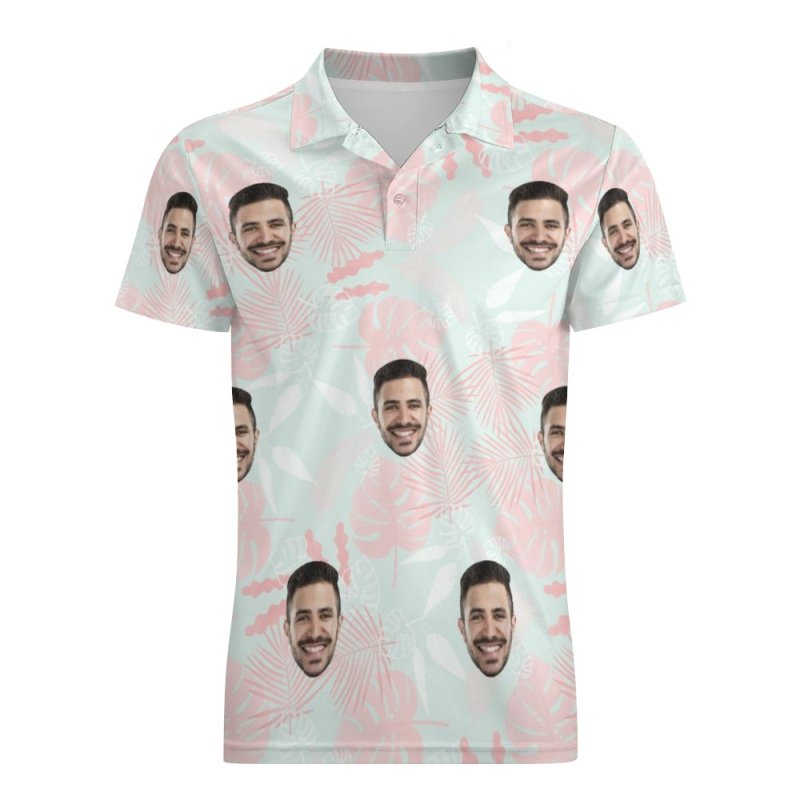 Men's Custom Polo Shirt Pink Leaves Personalized Hawaiian Golf Shirts