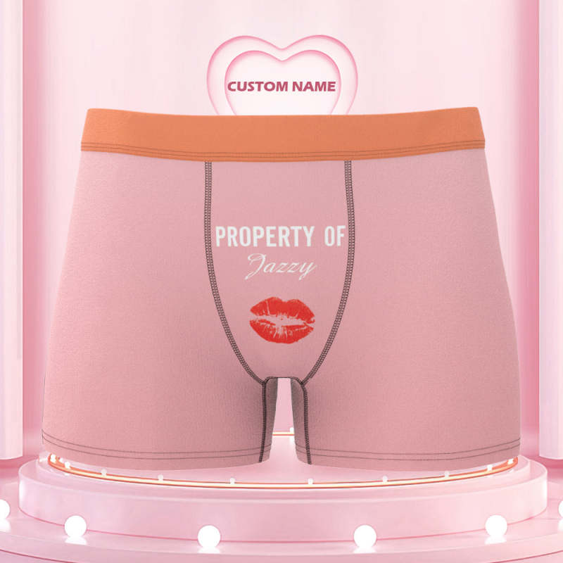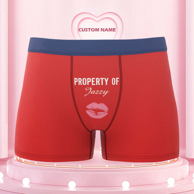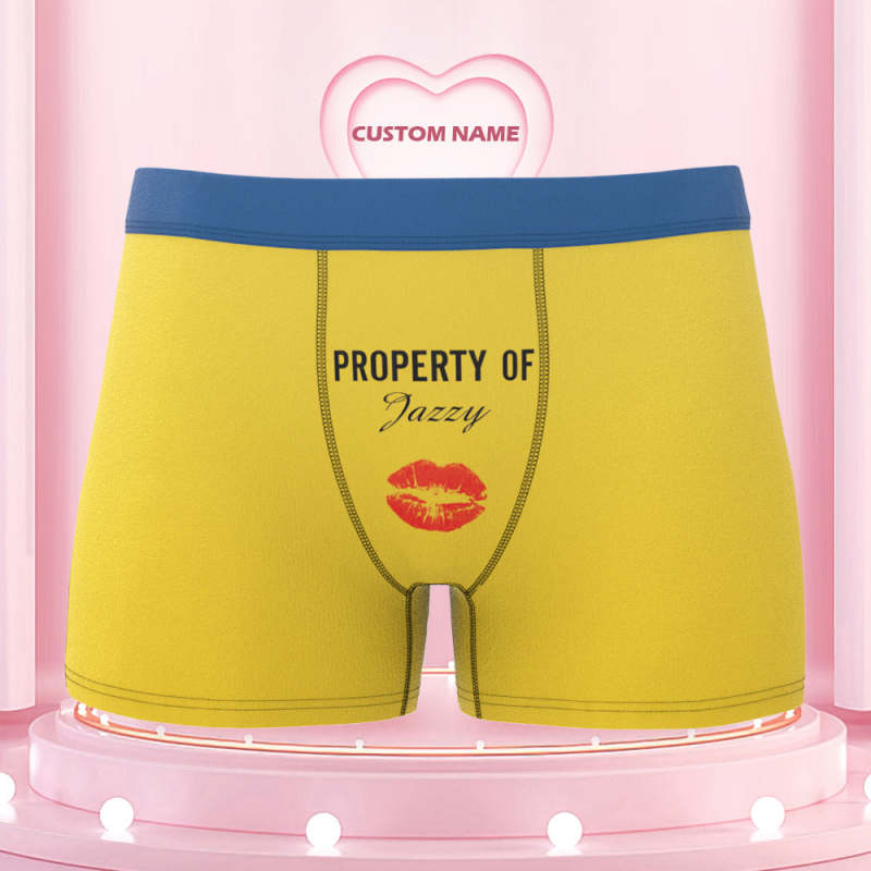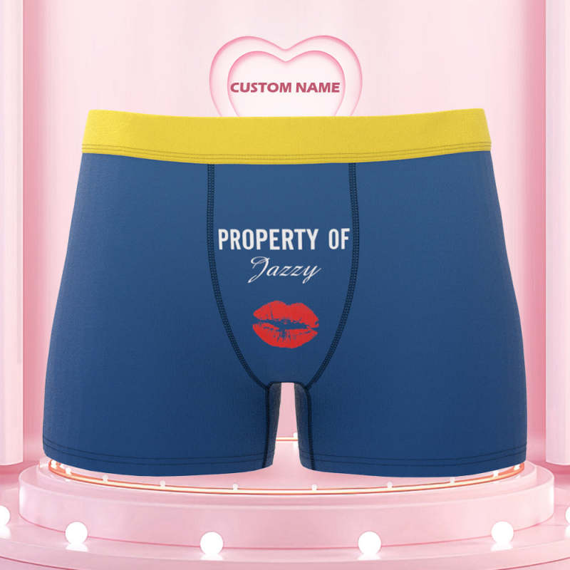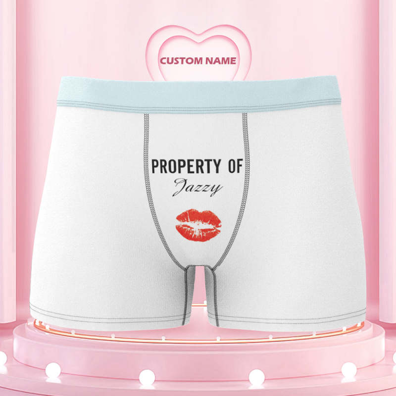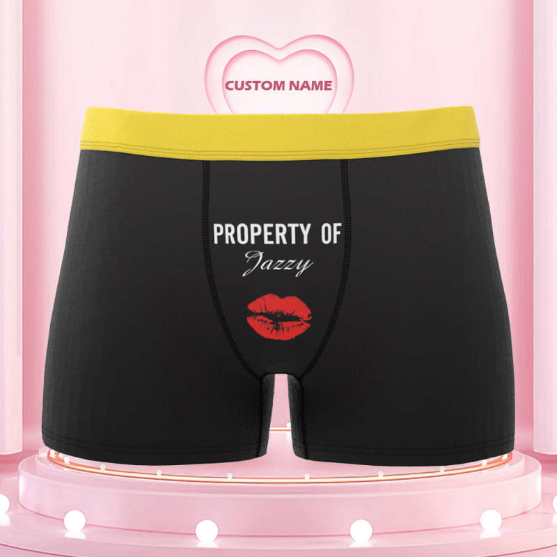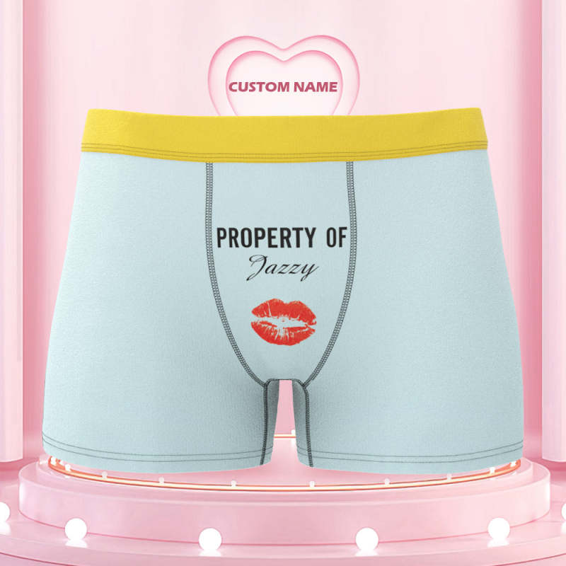 Men's Property of Girlfriend Name Colorful Waistband Boxers Gift for Him
