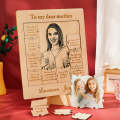 12 wishes for my mother wooden plaque puzzle printed with your photo is one of the best gift choice for Mother's Day. The middle picture is made of acrylic. It is both a delicate table decor also a fun puzzle. 12 words to express your love for your mother on Mother's Day.