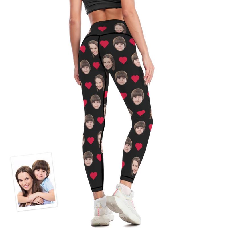 Custom Face Leggings Heart Yoga Pants Gift for Her