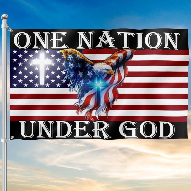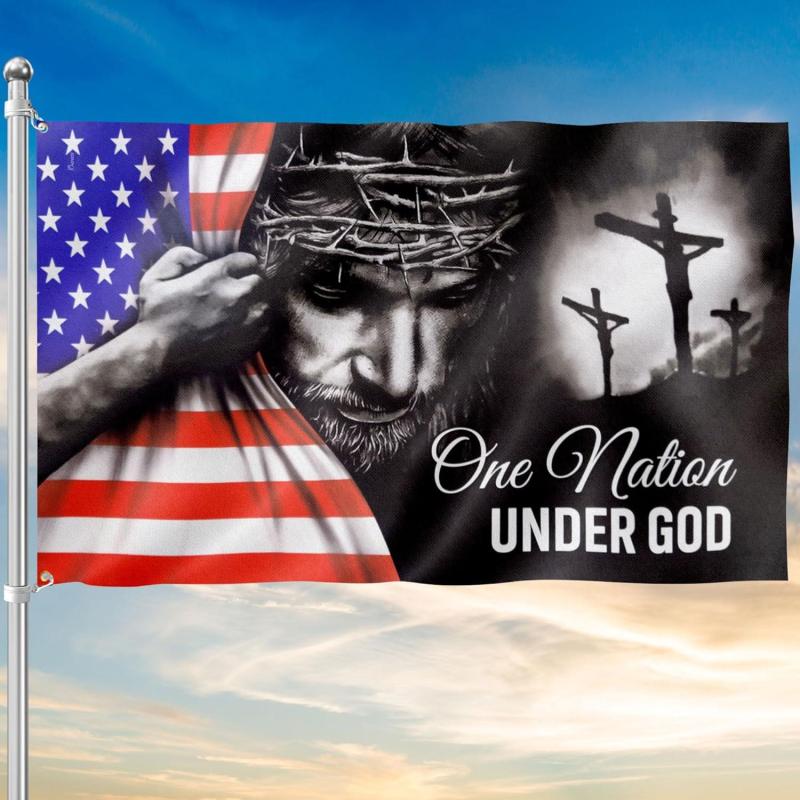 Patriot American Flags, One Nation Under God American Jesus Flag, Decorations For Home, Outside, Independence Day House Flag, Patriot Decorations - Outdoor Decor Flag with Grommets