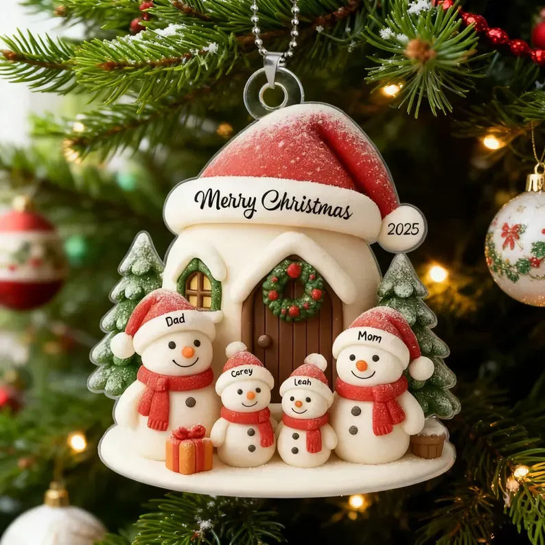 Personalized 3-8 Family Christmas Ornament, Acrylic Snowman Family Hanging Ornament, Christmas Gift for Grandma/Mom, Christmas Decorations