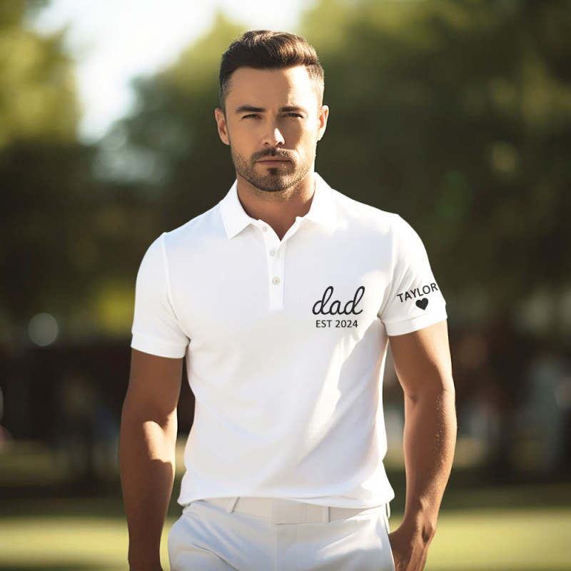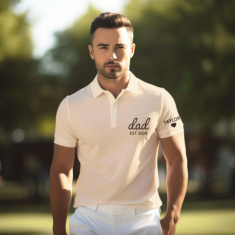 Father's Day Gifts Personalized Dad Polo shirt With Date, Custom Sleeve With Name