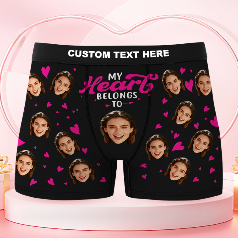 Personalized Face Boxer Briefs Funny Photo Underwear My Heart Belongs to Her Gift for Men