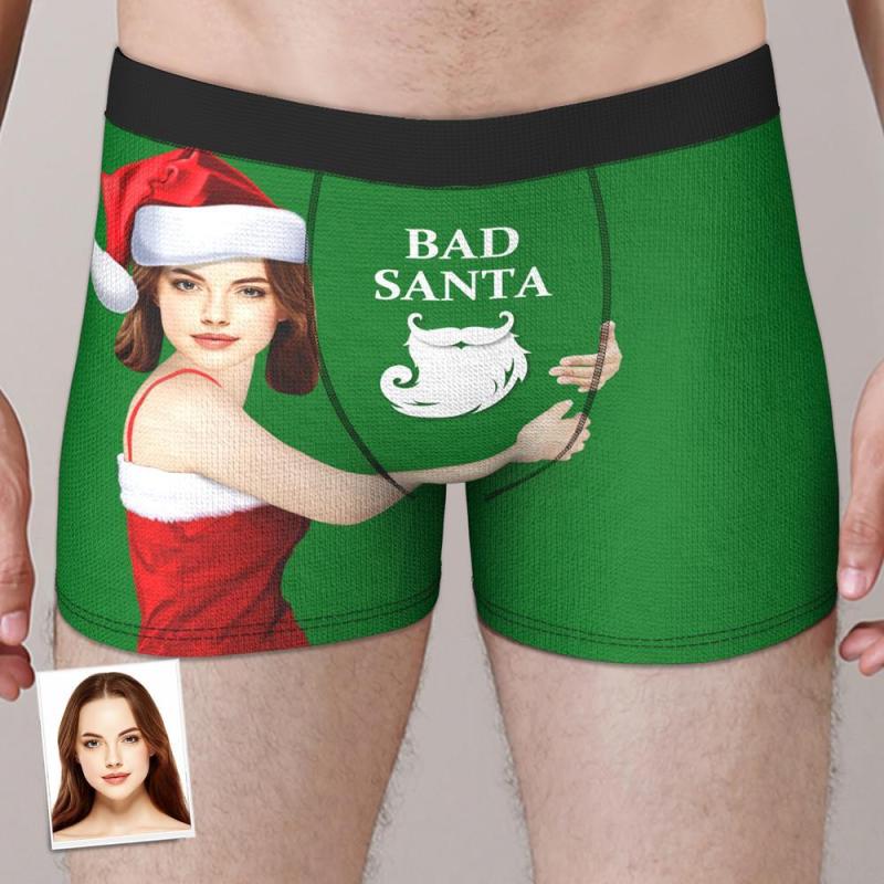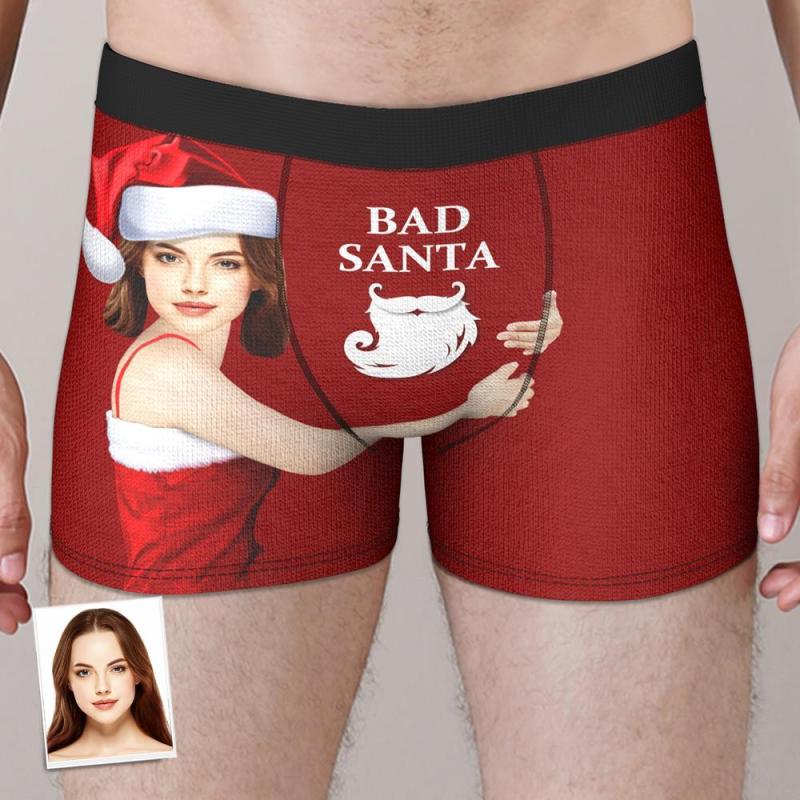 Personalized Face Boxer Custom Photo Men Underwear Bad Santa Christmas Gift for Husband