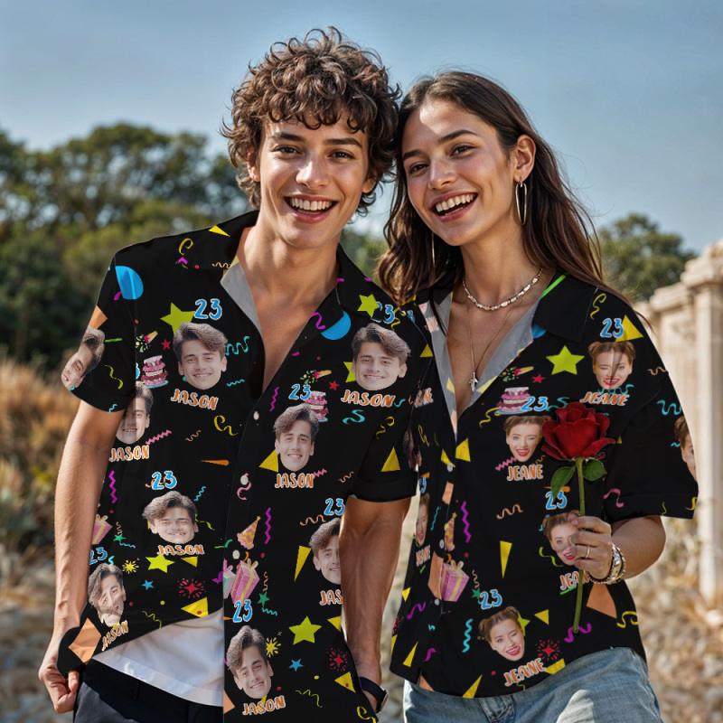 Personalized Face Hawaiian Shirt Personalized Birthday Men Light Blue Swimming Pool Hawaiian Shirt Party Gift